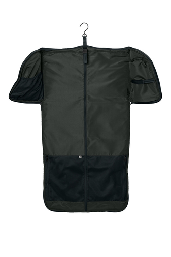 1,000D x 1,000D ballistic poly PU/1,680D poly coated PU Transforms from a duffel to a garment bag by simply unzipping When completely unzipped, garments hang neatly in main compartment Interior shoe pocket fits shoe sizes up to 13 Buckle webbing loop for hangers Interior mesh slip pocket Interior zippered mesh pockets Wrapped haul handles Metal hanging hook Zippered front pocket Zippered end pockets Luggage trolley pass through Metal O icon on front Zipped up duffel dimensions: 12.5'h x 22'w x 10.5'd Capacity: 2,959.7 cu. in./48.5 L Weight: 3.6 lbs./1.6 kg Note: Bags not intended for use by children 12 and under.