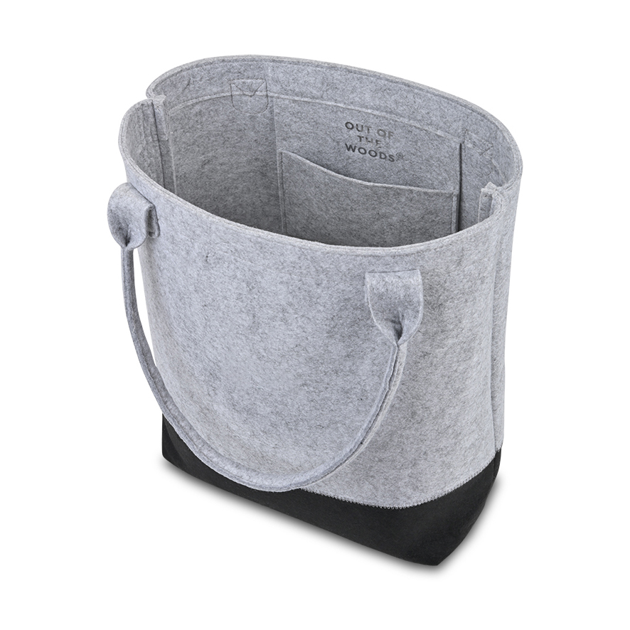Modern style, everyday function. The Out of The Woods® Felt Colorblock Tall Tote is made from 100% recycled PET bottles and designed to carry laptops and daily essentials with ease. Featuring a structured silhouette, roomy interior, and pocket for organization, it blends durability with sophistication—perfect for work or everyday use.