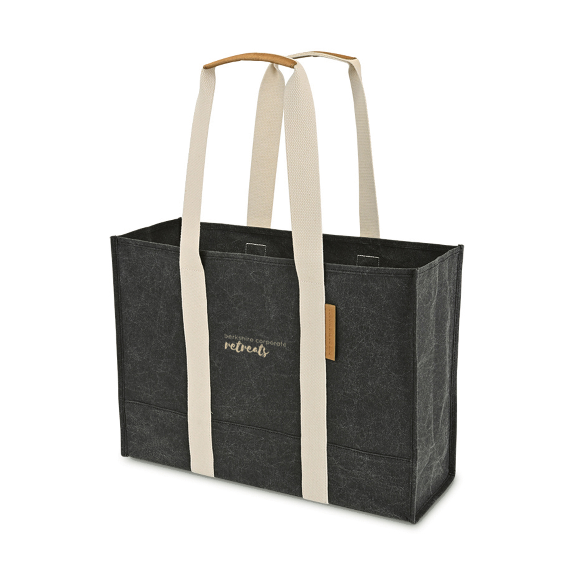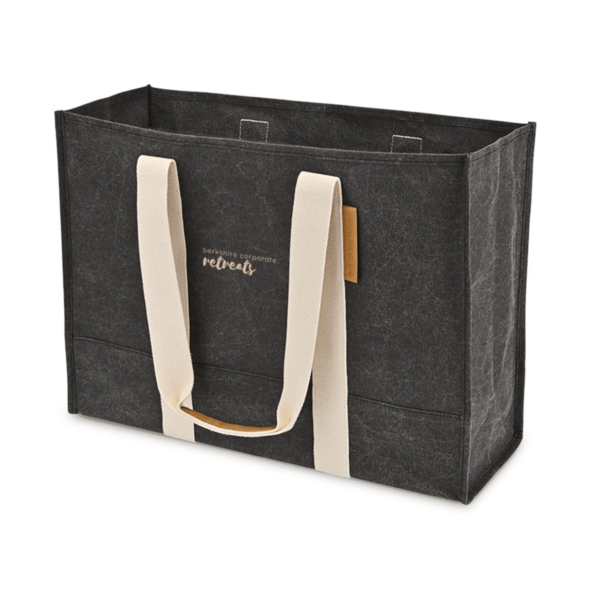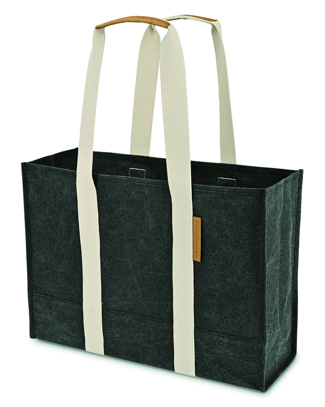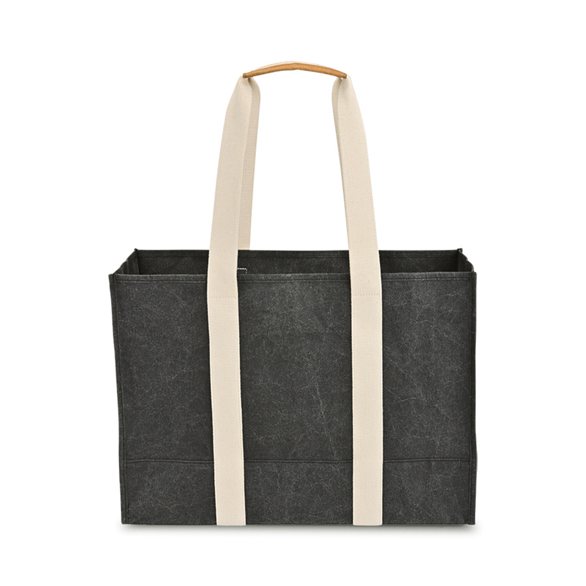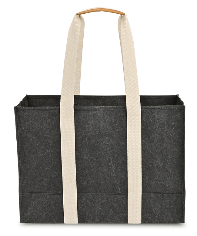All Out of the Woods bags feature Washable Paper which is sustainable, washable, and vegan. Washable Paper is FSC®-certified (FSC® C153080) made of tree cellulose, a renewable resource, from responsibly managed forests. The flat base provides order for books and office essentials or the perfect foundation for stacking groceries, while cotton handles make any load comfortable to carry.