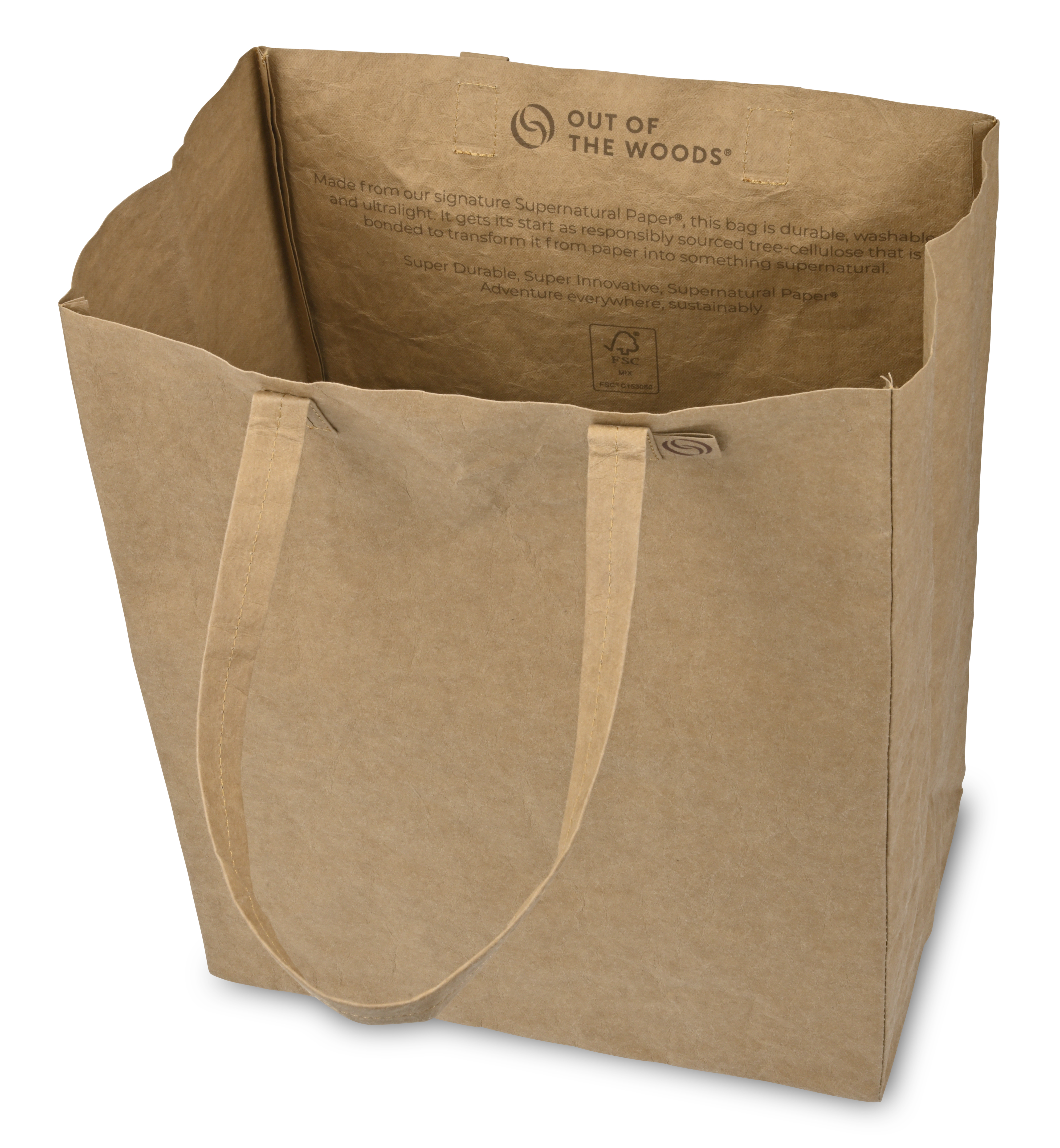 Durable, washable, reusable. The Out of The Woods® Market Tote is crafted from FSC®-certified washable paper, blending the rugged look of leather with lightweight durability. With a spacious interior and sturdy handles, it’s ideal for market trips or everyday use. Machine washable and PVC free, with natural pigments that give each bag a unique finish.