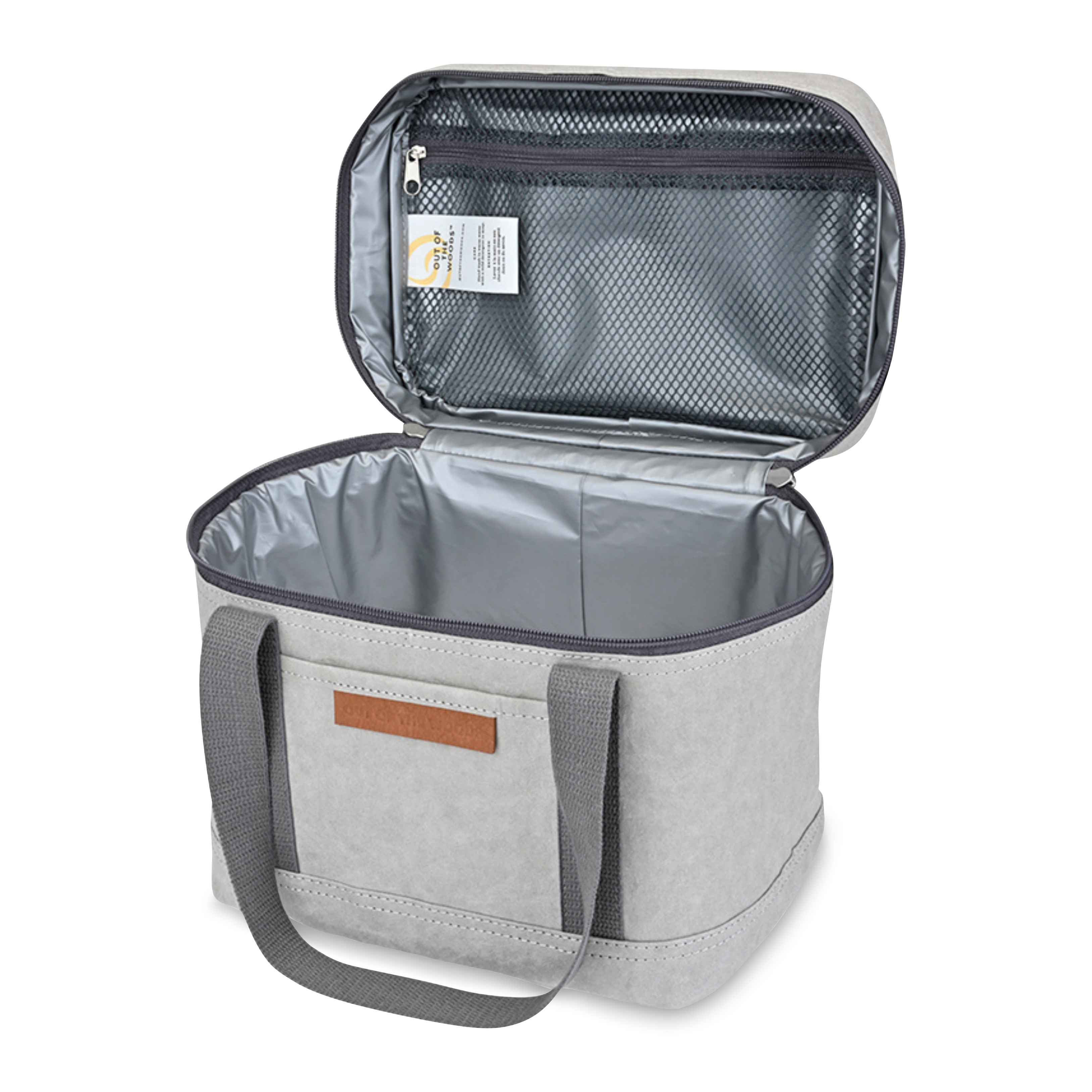 The Out of the Woods® Walrus Mini Lunch is a smaller version of the best-selling Walrus Cooler—perfect for everyday meals or snacks. Made from FSC®-Certified washable paper that blends the rugged look of leather with lightweight durability, it features a heat-sealed PEVA lining, inner mesh pocket, and outer storage pocket. Wipeable and washable, it’s a stylish, sustainable essential for lunch on the go.