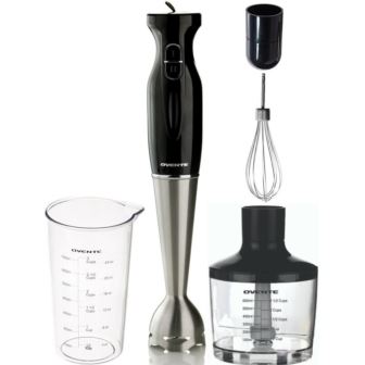 Witness ease, convenience, and versatility at workright in your own kitchen. Discover a world of innovative cooking possibilities with the Ovente HS565 Multi-Purpose Immersion Blender. It's a pleasure to blend and mix food with this hand blender because using this appliance is fun and effortless! Its lightweight body along with its ergonomically designed non-slip handle is comfortable to hold and control, that's why cooking won't ever feel like a chore again. Whip up all of your favorite gourmet soups, guacamole, smoothies/shakes, cake batter, salsas, sauces, marinades, salad dressings, or even homemade baby food for your precious bundle of joy with just one press of a button. Powered by a powerful 300-watt motor, it works quickly and effectively expertly mixing anything you desire into a smooth, evenly-mixed medley of mouth-watering flavors. Its Slim-Stick design enables this hand blender to fit into any mixing bowl, pot, beaker, or cookware without restriction. It's compact enough to fit anywhere, but powerful enough for the toughest blending jobs. It was also carefully designed to come apart easily so that cleanup and storage are not a problem. The hand blender also comes with 3 premium attachments - 24 oz. beaker that can be used for measuring liquid, a food chopper that can be attached to the motor housing for chopping ingredients, and a stainless-steel egg whisk for whisking cream, egg whites, and other treats. NOTE: TO PREVENT OVERHEATING, OPERATE THE HAND BLENDER IN ONE MINUTE INTERVALS OR LESS.