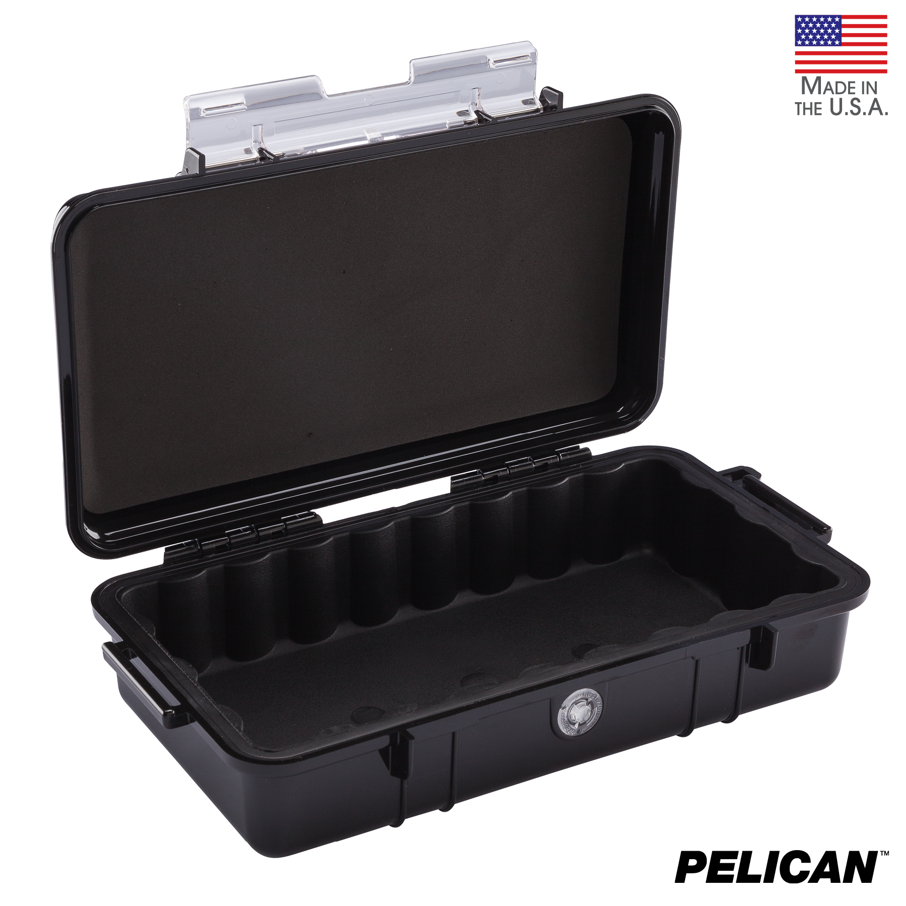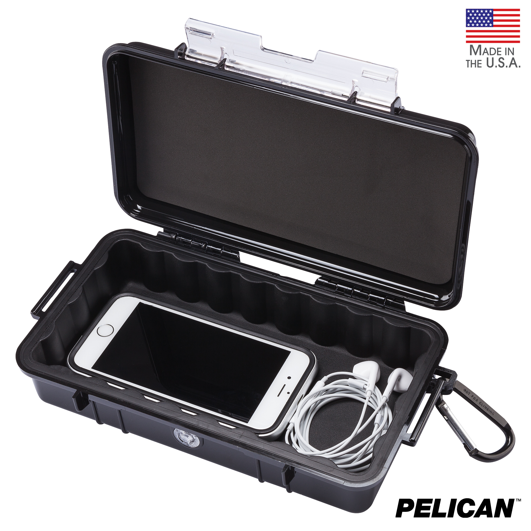 The Pelican™ watertight and crushproof micro case is the answer to keeping all of your sensitive components and smartphones safe. It protects your gear from the elements and dust, includes an automatic pressure equalization valve, easy open latch and rubber liner (which doubles as an o-ring seal) for extra protection and an aluminum carabiner for easy attachment. This case can be submerged under 1 meter of water for up to 30 minutes in accordance with IP67 testing parameters. Interior size: 8 1/4" x 2 1/4" x 4 1/4". Made in the USA.