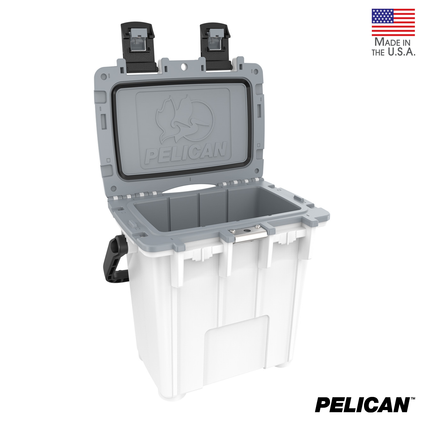 20 quart Pelican™ Elite coolers perform to the highest of standards — better and tougher than any other cold locker or icebox. Pelican Products has protected defense, emergency, and scientific expedition equipment through some of the harshest conditions on Earth since 1976. Extreme insulation keeps ice for up to two days. Tall design will hold 15 cans or four wine bottles upright. The molded-in lock hasp keeps your contents secure and has an integrated bottle opener. It also features an easy carry handle and four molded-in can holders. It is made in the USA and offers a lifetime guarantee.