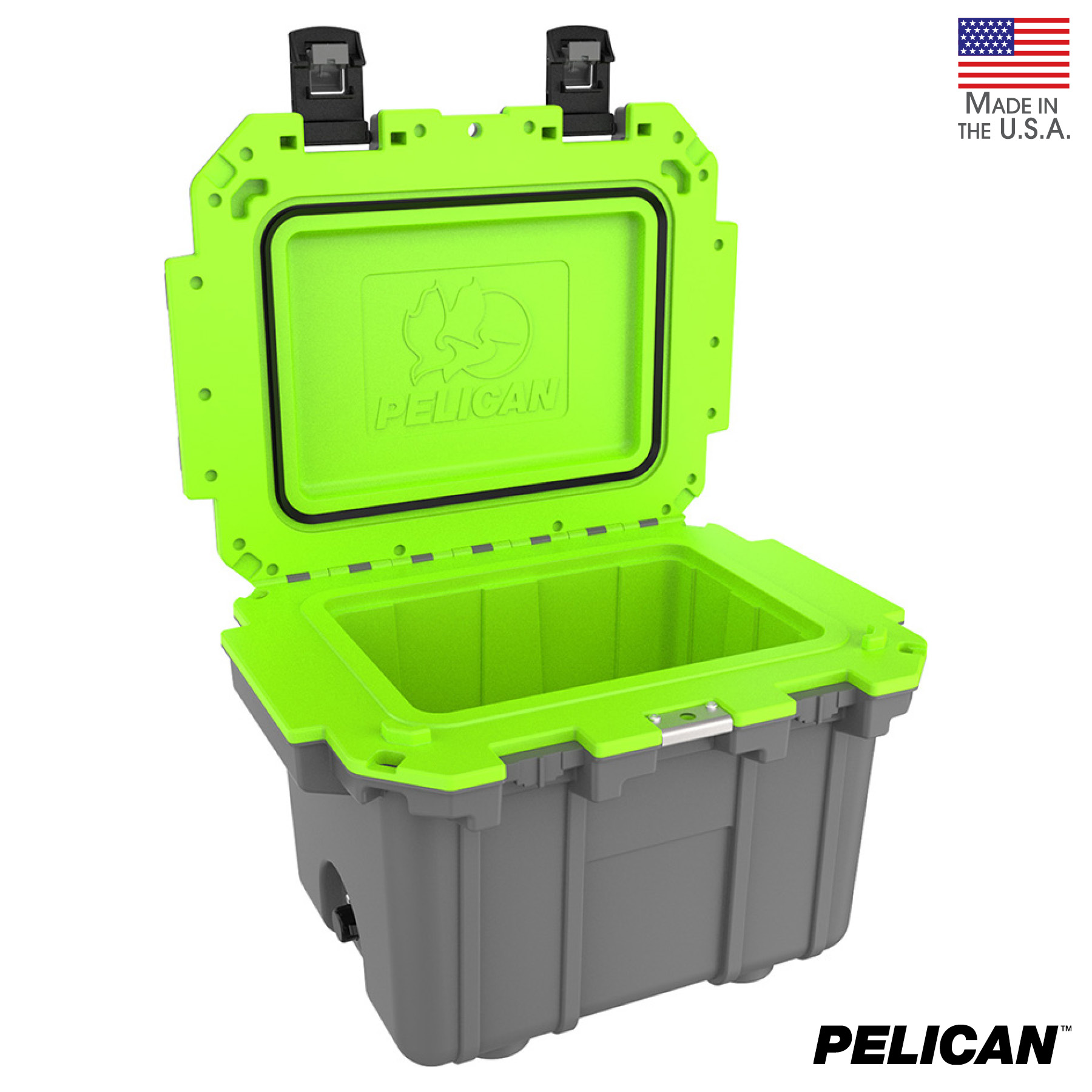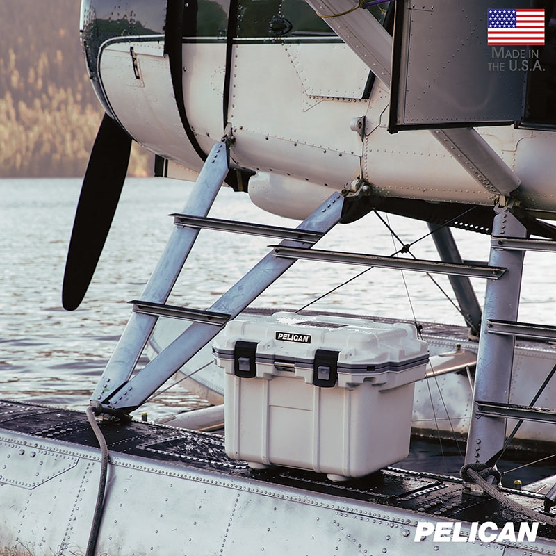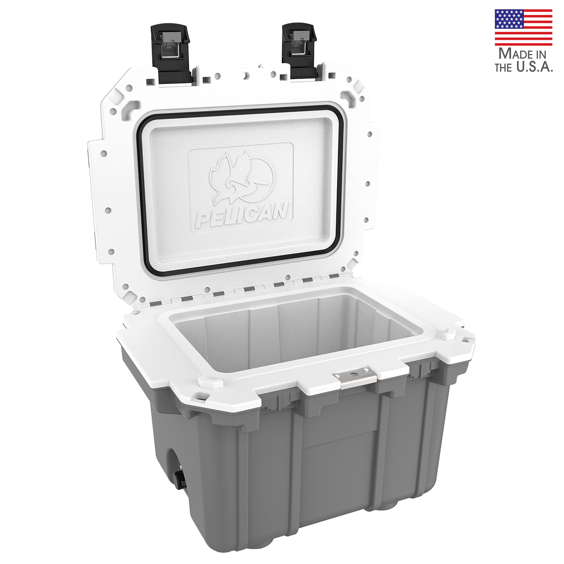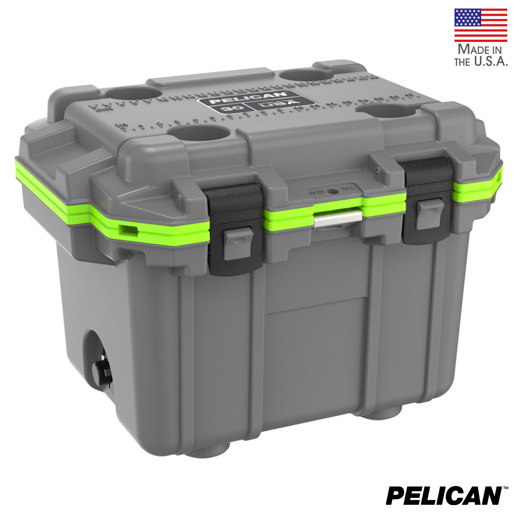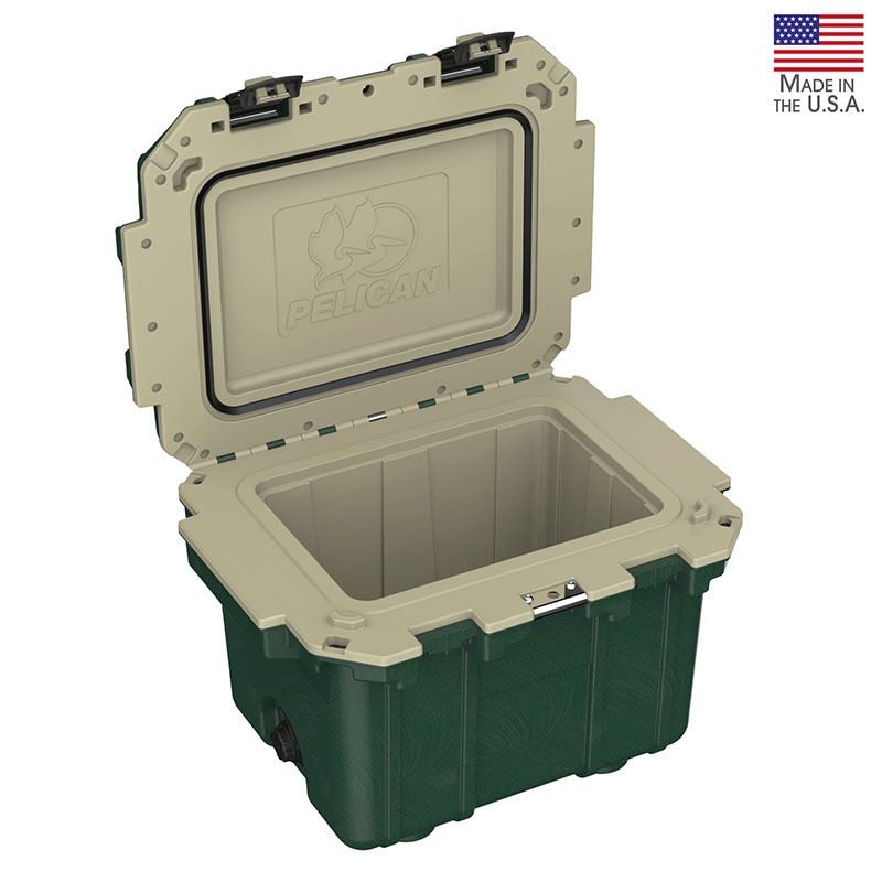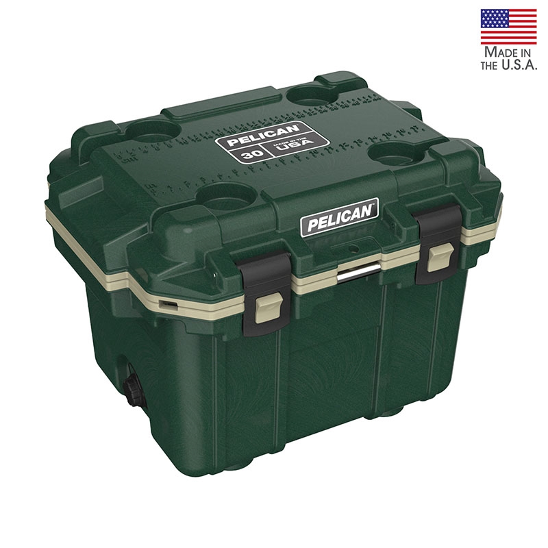 30 quart Pelican™ Elite coolers perform to the highest of standards — better and tougher than any other cold locker or icebox. Pelican Products have protected defense, emergency and scientific expedition equipment through some of the harshest conditions on Earth since 1976. Extreme insulation keeps ice for up to seven days. The molded-in lock hasp keeps your contents secure and has an integrated bottle opener. It also features molded-in carry handles, has four can holders and a 22-can capacity. The cooler has a sloped floor and a tethered drain plug that is threaded for a standard garden hose. It is made in the USA and offers a lifetime guarantee.