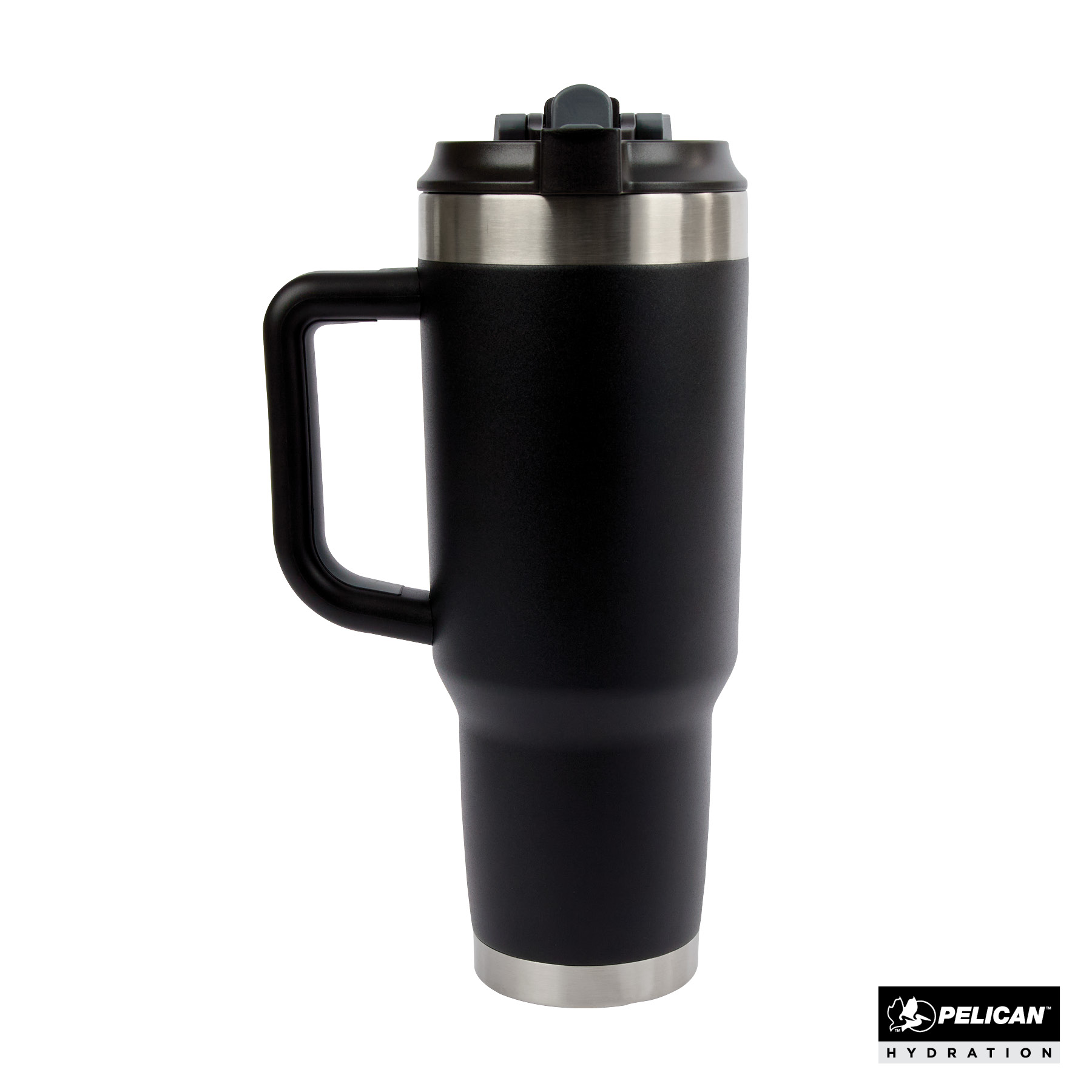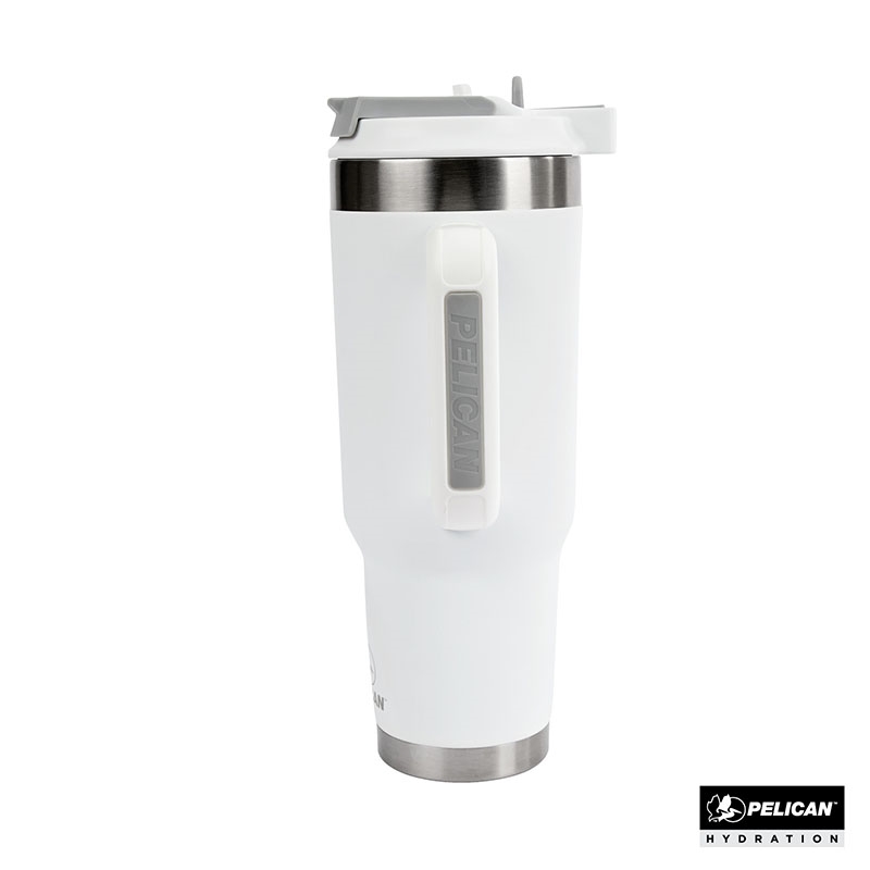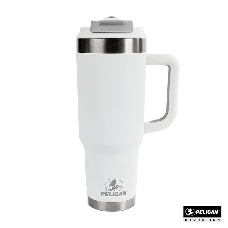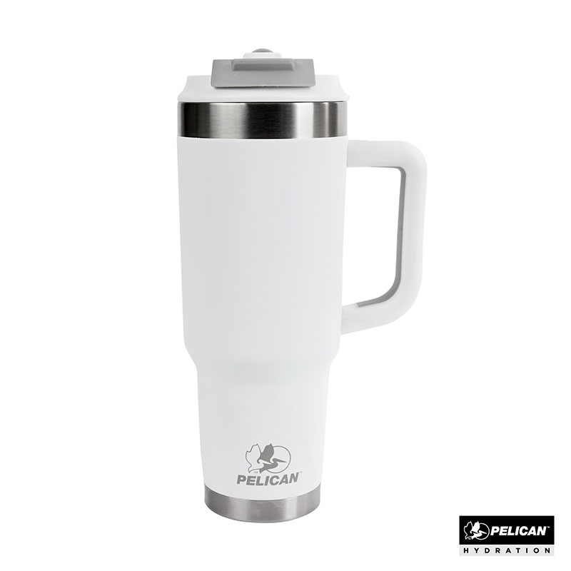 Stay hydrated throughout the day with the 40 oz. Pelican Porter™ Dual Travel Tumbler, your ideal companion for all of life’s adventures. Featuring a leak resistant, dual-function lid with locking mechanism this large capacity cup has both a sipper hole with flip-cover for drinking hot liquids and a flip-up straw spout for enjoying cold beverages. Designed with sustainability in mind, it’s made from 90% recycled pro-grade 18/8 stainless steel and the double-wall vacuum insulation, combined with copper lining, ensures that your drinks stay hot for up to 9 hours and cold for up to 16 hours. The ergonomic, double-injected handle provides a comfortable, soft-touch grip, while the durable powder coat finish is scratch-resistant and sweat-proof. With a tapered base that fits most cup holders and leak-resistant lid, the Pelican Porter™ Dual is the ultimate travel tumbler for your on-the-go lifestyle. FDA compliant and BPA-free.