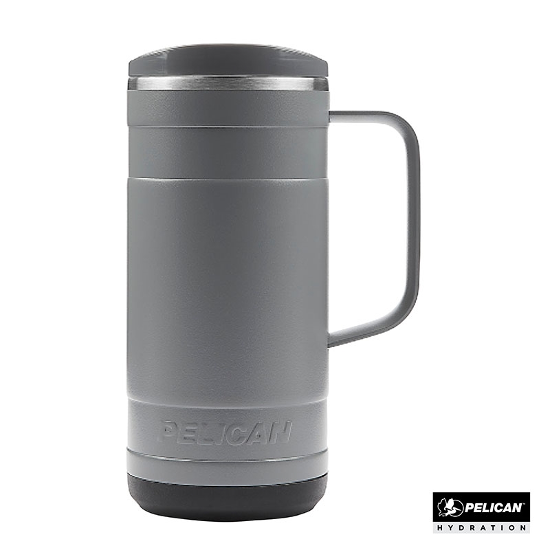 Whether sipping a hot cup of tea in the morning or a freshly brewed iced coffee in the afternoon, the 18 oz. Pelican Ridge™ Travel Mug provides you with a great drinking experience no matter where you are. Made from high-quality pro-grade 90% recycled 18/8 stainless steel, this sustainable hydration choice has copper lining and vacuum insulation that keeps drinks hot for 6 hours or cold for 12 hours. It not only looks great in the great outdoors but will fit most car cup holders making it a perfect commuting or road trip companion. The unique two-tone push-on lid with slider closure is splash resistant and has a translucent top so you can see just how much drink you have remaining. The Pelican Ridge™ also features a removable silicone base that provides extra stability and protection from bumps and scrapes, an ergonomic steel handle and a durable and protective powder-coat finish. FDA compliant and BPA Free. U.S. Patent No D1078390.