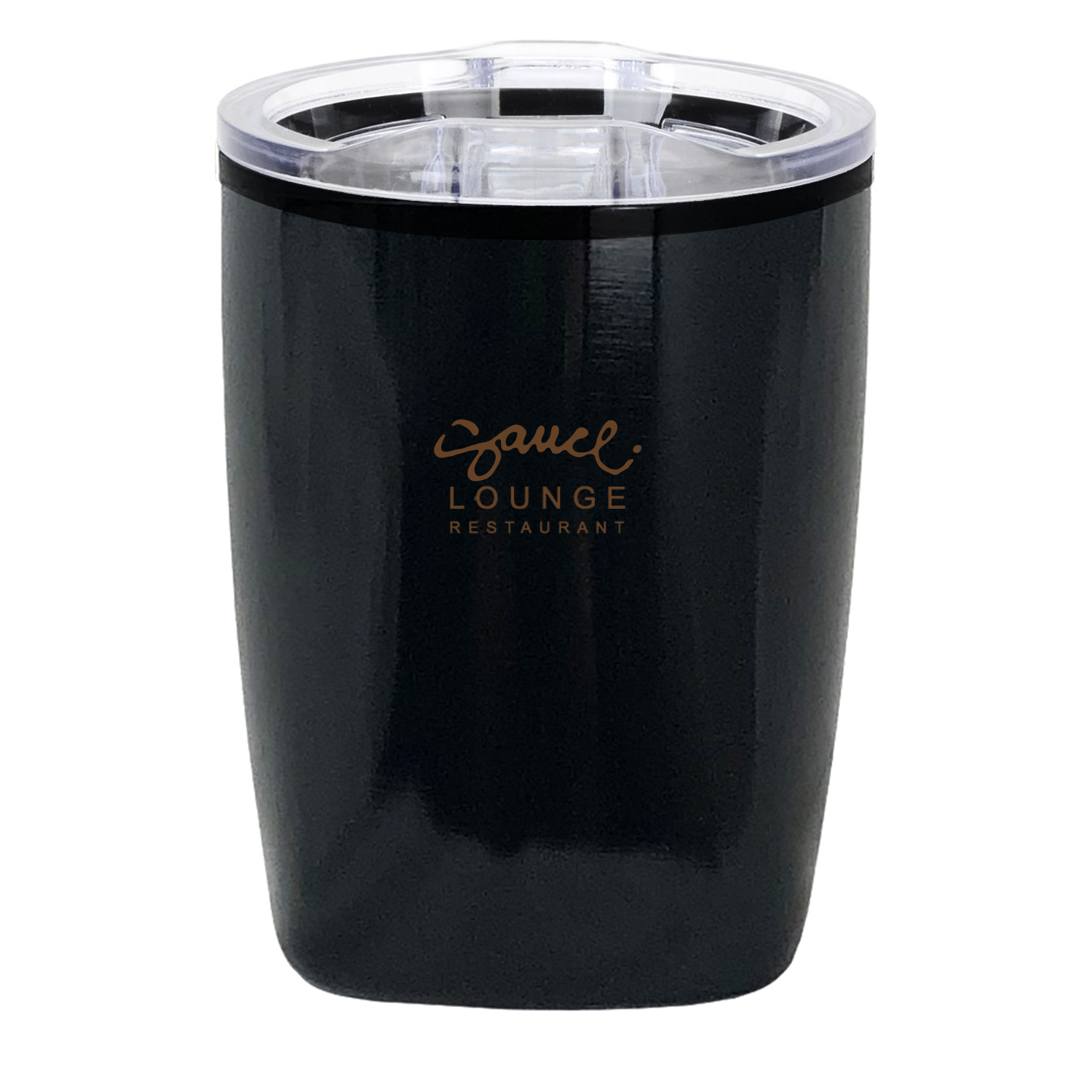 Stainless steel 201 outside with black plastic liner for this 12 oz low-ball cup. Available in glossy black, glossy white, and stainless silver.