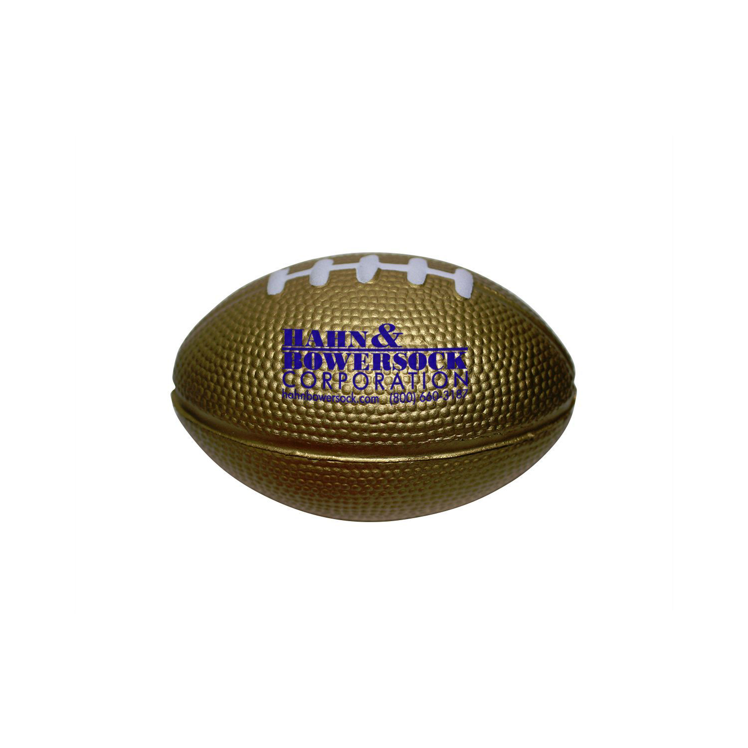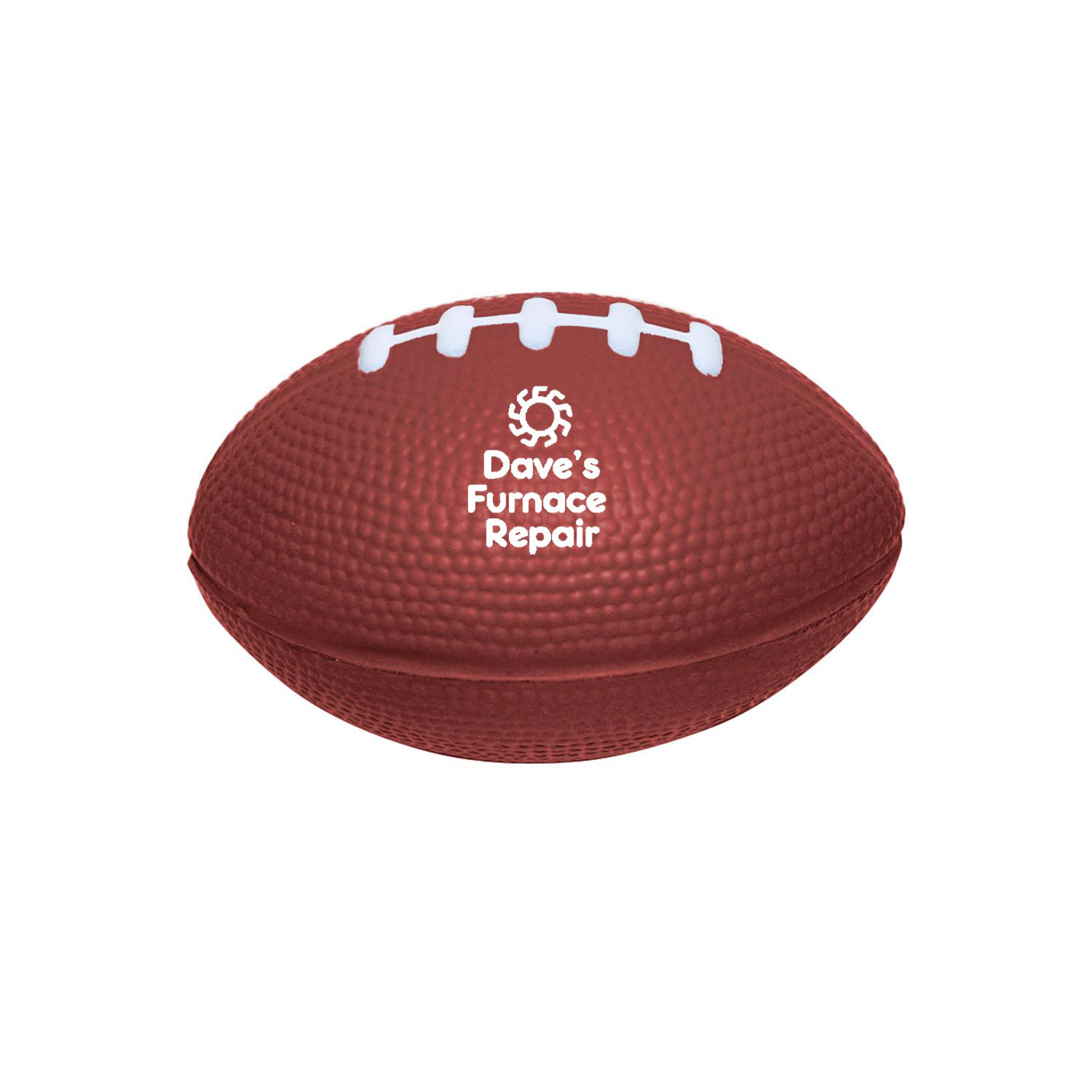 Stress reliever in sports shape Football. This product is not a toy and is not safe for use by children under 3 or pets. Please note: because each polyurethane stress ball is manufactured by hand, no two balls are exactly alike. Factory is not responsible if imprint is not completely legible. Imprint will break and appear uneven due to the textured surface.