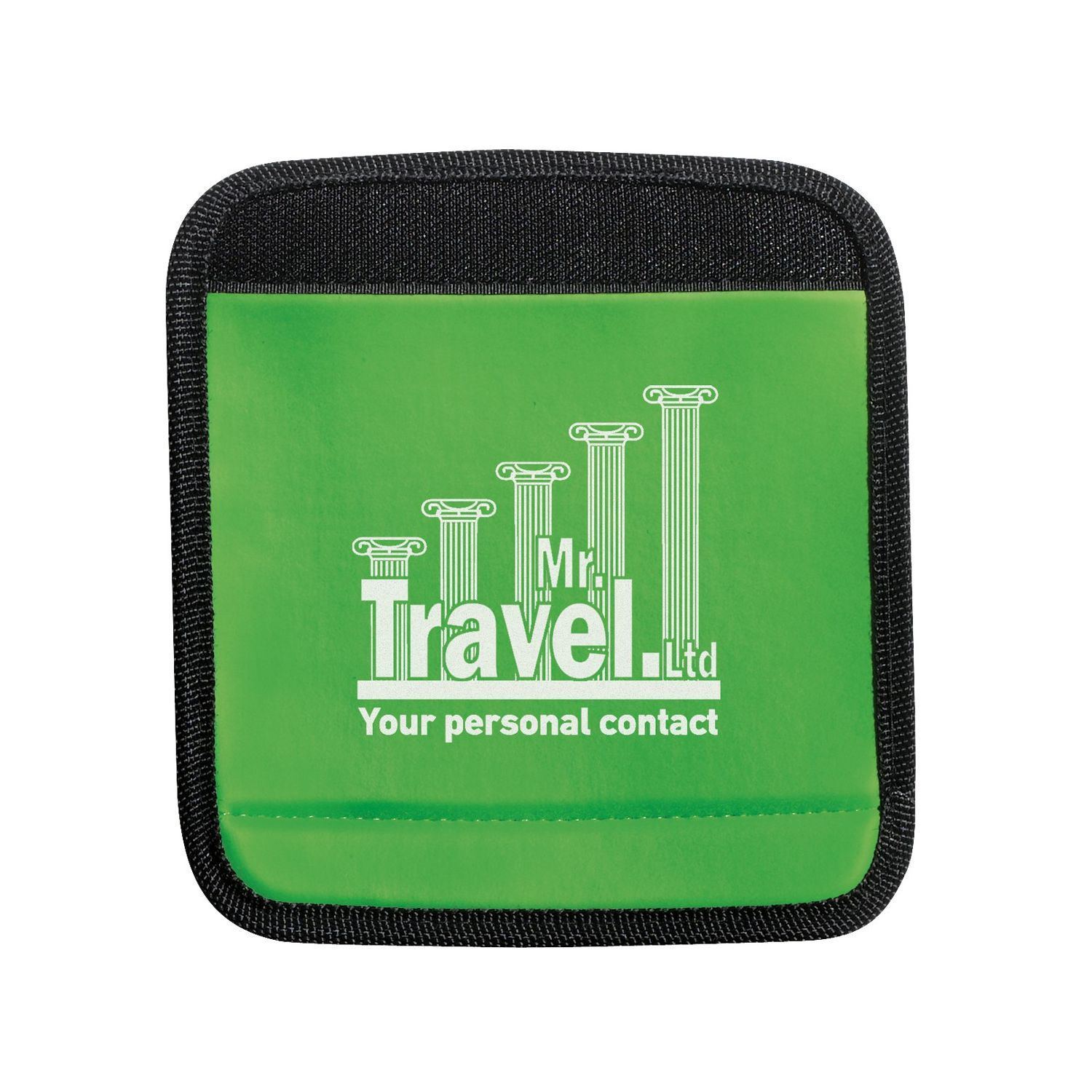Perfect Luggage Grabber. Padded luggage handle wrap with ID panel. Extra thick PVC with 3mm foam cushioning. Helps quickly spot your luggage as well as provides a comfortable grip for carrying. Wraps around handle and secures with hook and loop closure (R). Sturdy ID label in 70D attached on back. Size: 5 3/4 x 6 flat.