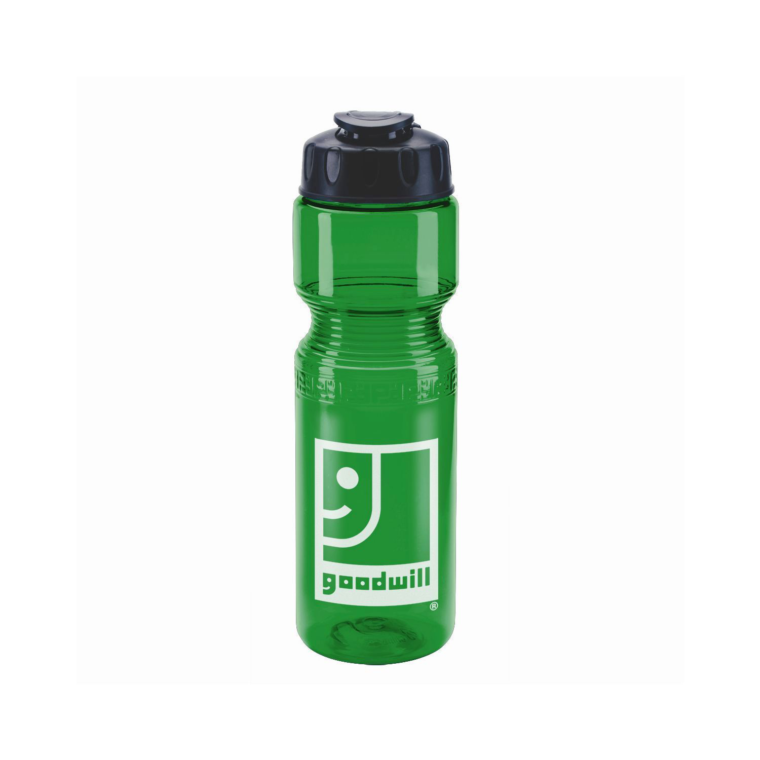 Sports bottle, 28 oz. BPA free. Fits most drink holders and flip and slip twist-on cap. Wide mouth perfect for ice cubes. Free assembly. 100% recyclable reusable. Same color, second side or wrap imprint at no additional charge. Size: 10 H x 2-3/4 Diameter - 9-1/8 Circumference.