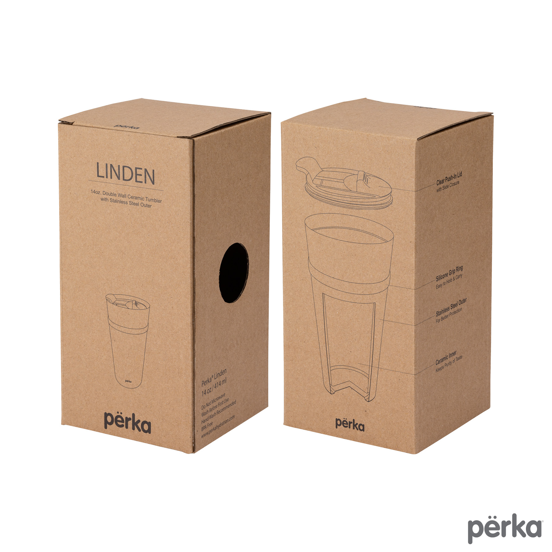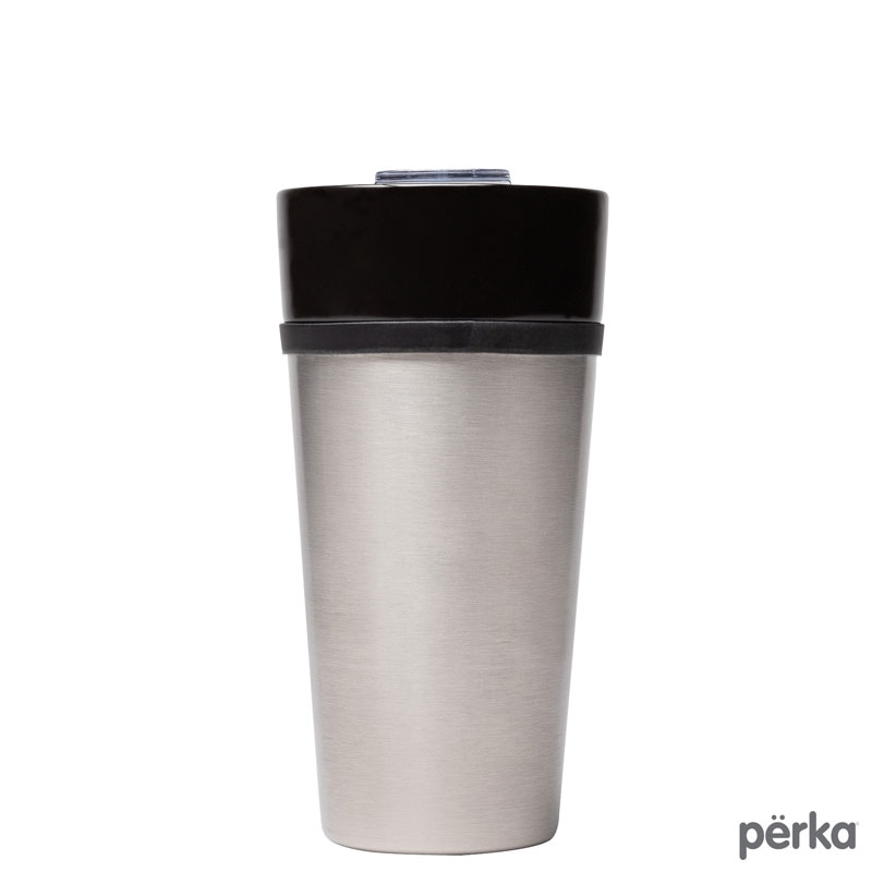 The Perka® Linden Tumbler is the perfect drinkware piece for your home or workplace. it has a double wall construction with a ceramic inner wall for cleaner tasting beverages and a stainless steel outer wall for improved protection and insulation. The 14 oz. capacity Linden features a translucent push-in lid with a spill-proof slide closure and the exterior silicone connection band provides a more secure grip. Take it with you in the car on daily commutes or long road trips as this tumbler fits in standard car cup holders. Packed in an individual brown box, this tumbler is BPA Free and FDA compliant. A portion of all proceeds is donated to Shelter to Soldier™, a non-profit organization that rescues dogs to train as service animals for veterans in need.