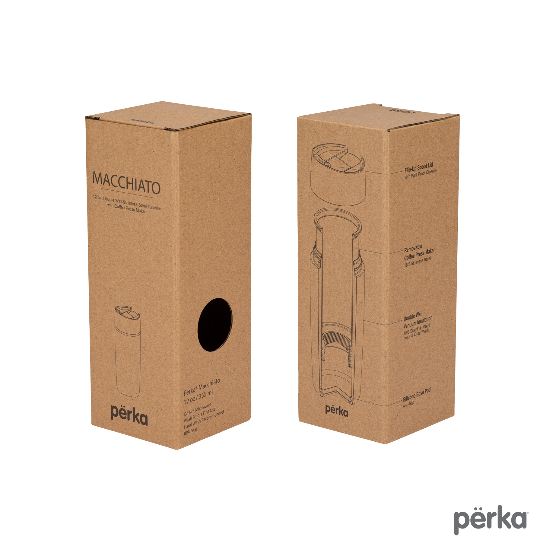 Perka® Macchiato 12 oz. Double Wall Coffee/Tea Press Tumbler KM2405