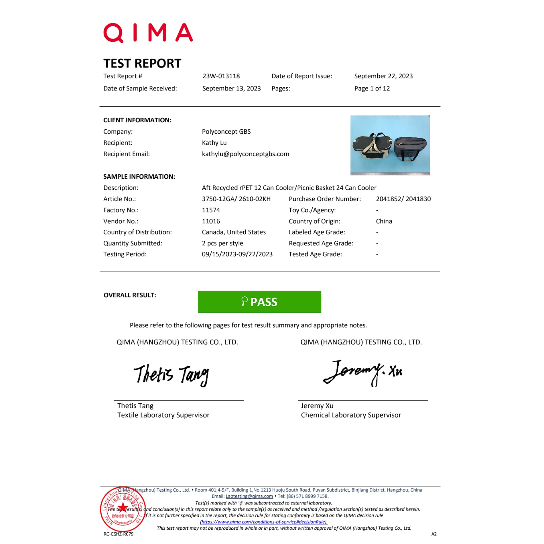 Main compartment features unique picnic basket design with dual snap closures. Holds up to 24 cans. External accessories pockets. 6" handle drop height. Insulated PEVA lining.