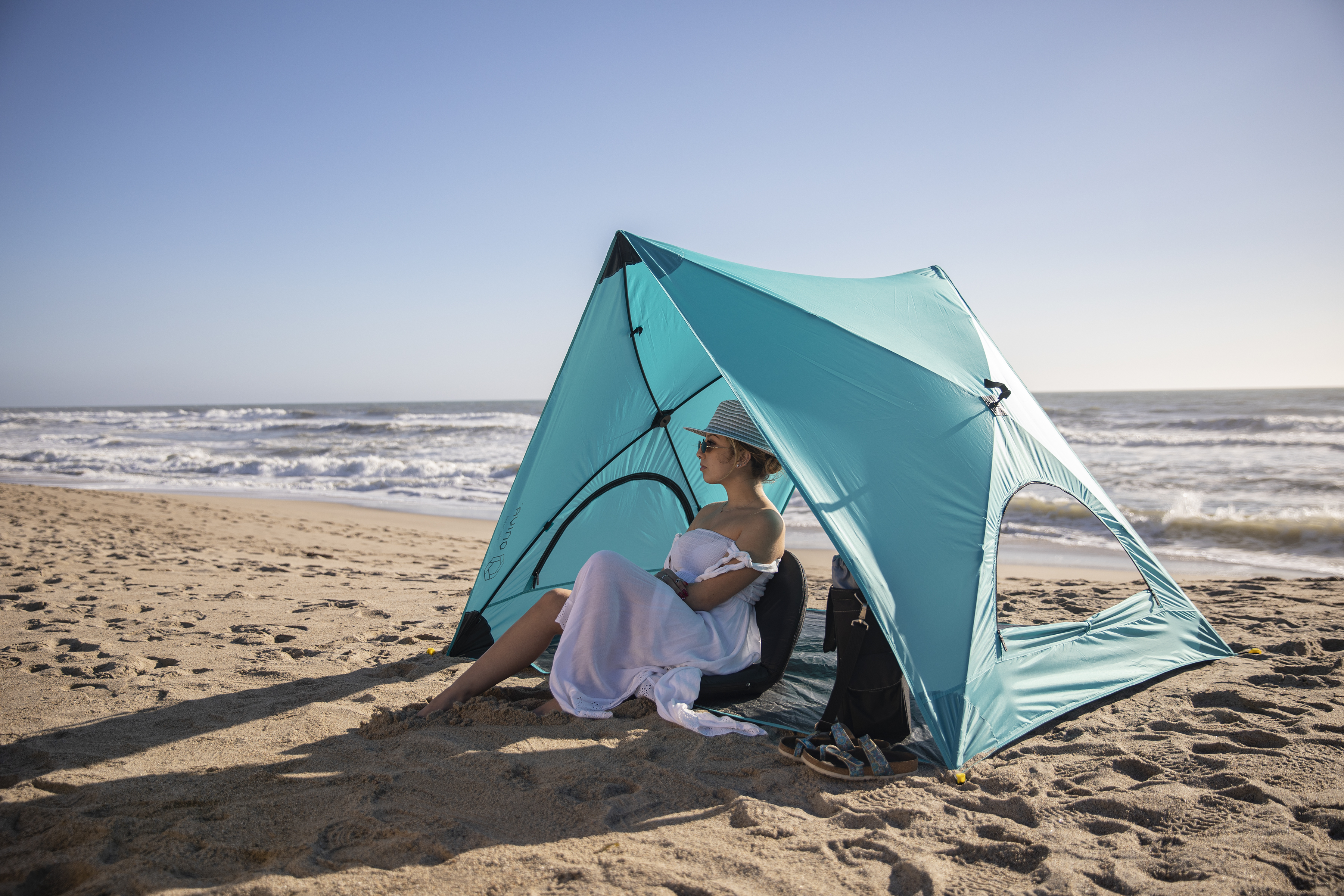 For an easy set up sun shade that lets the breeze flow through, the Pismo A-Frame Portable Beach Tent is your ideal choice. This pop up tent has a UPF 50+ sun protection rating and with a lightweight polyester shell and fiberglass 'wire' frame, this shade tent folds in on itself with the pull of two strings. Add to that a heavy duty moisture resistant floor, two double zippered windows for ample air flow, and a convenient carry bag with shoulder strap, this is the warm weather outdoor accessory you won't know how you lived without. Lightweight polyester shell and fiberglass 'wire' frame Heavy duty moisture resistant floor Convenient storage/carry bag with shoulder strap