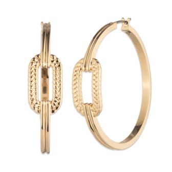 Make a stylish statement with these Lauren Ralph Lauren herringbone link hoop earrings, showcasing a gold-tone and intricate linked pattern. The pierced post design and click-it closure ensures a comfortable, elegant wear.