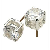 Round CZ studs set in silver with surgical steel posts. Silver plated with e-coat for anti-tarnish finish. Pierced with bullet backs.
