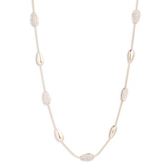 A pair of pear-shaped pendants shine bright with the pavé crystals that make this Lauren Ralph Lauren lariat necklace glow.