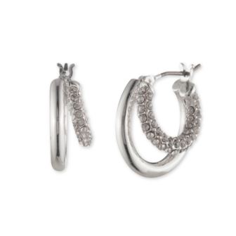An on-trend split-hoop design is partially decorated with pavé crystals. Earrings by Lauren Ralph Lauren. Pierced.