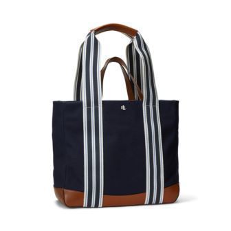 The Lora tote unites durable canvas with smooth, full-grain leather trim to create the season's must-have warm-weather accessory. With nautical-inspired stripes and a polished "LRL" logo at the front, it's equipped with a spacious silhouette and an array of pockets that easily store your essentials.