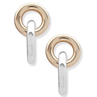 Chic drop earrings in a two-tone finish. Pierced with post back. Approximately 0.75" drop.