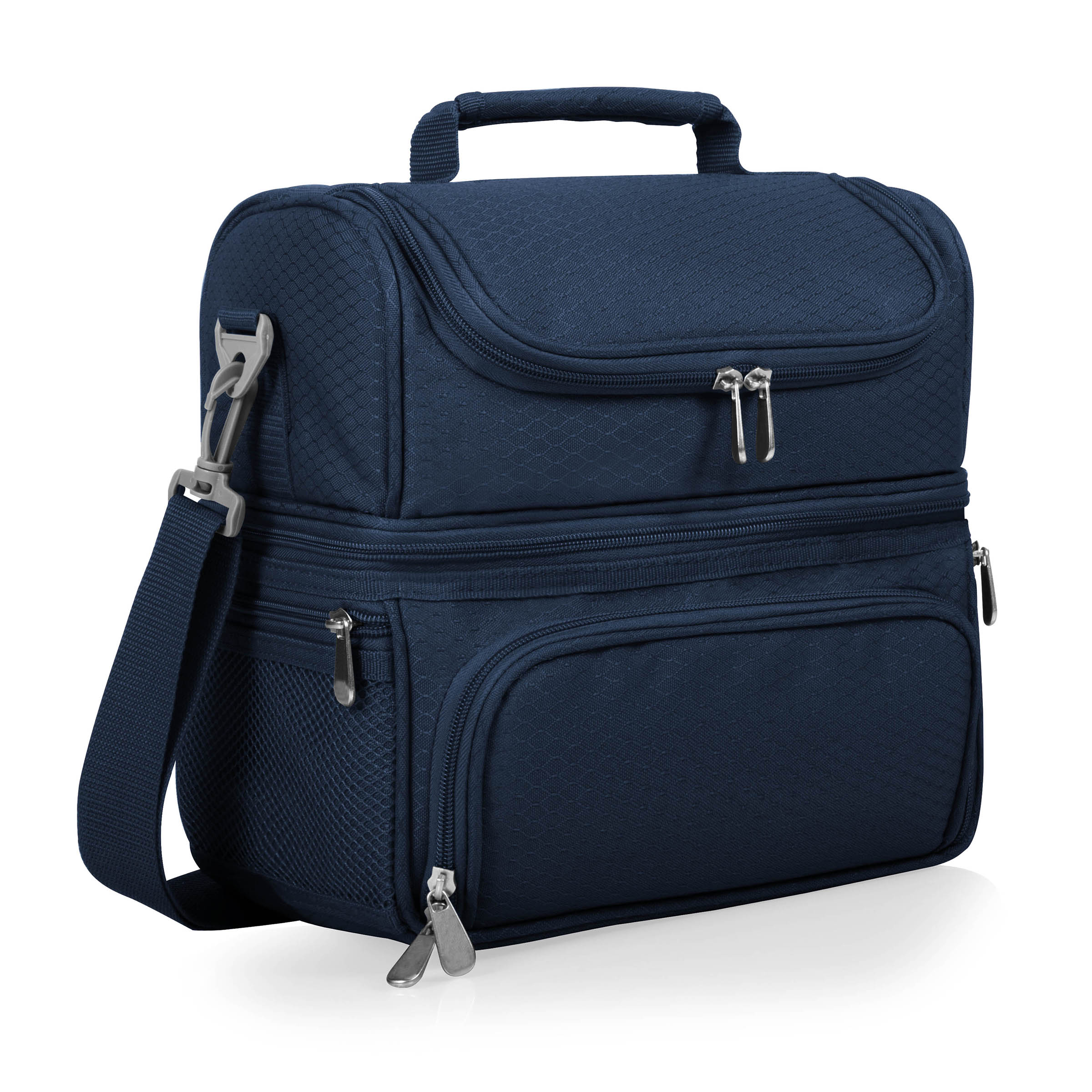 Level up your lunch box game with the Pranzo Lunch Bag Cooler with Utensils, an insulated work cooler / lunch bag with top and bottom compartments to separate cold foods from warm/room temperature items. This polyester 8-can-capacity lunch cooler bag with an adjustable shoulder strap and grab-and-go handle also has a secret compartment containing stainless steel silverware, clear plastic salt & pepper shakers, and a 100% cotton napkin. Zippered mesh pockets on each side provide the perfect space for keys, wallets, or other essentials.