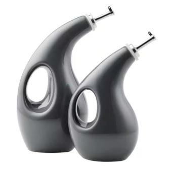 Splash, drizzle and pour on the fun when creating delicious salads, appetizers and more at home with the Rachael Ray Ceramic EVOO and Vinegar Bottle Set. Dress a dinner party salad with a delicious balsamic vinaigrette with these vibrant cruets, or drizzle extra virgin olive oil - EVOO, as Rachel calls it - over her Apple Bacon Cheddar Crostini. The ceramic bottles are opaque to protect oils and vinegars from oxidation and have handles integrated into the design to make them easy to grab and comfortable to hold. The overall shape is both timeless and trendy and the pouring spouts are proportioned to help deliver the ideal pour. For added convenience, the oil and vinegar EVOO bottle set is also dishwasher safe. Great as a bold display right on the countertop or table, this fun EVOO and vinegar bottle set is the perfect complement to many other items in the Rachael Ray collections.