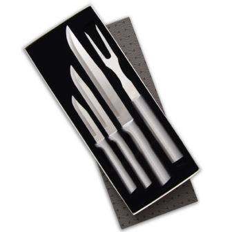With our Prepare Then Carve Gift Set, the recipient will master the art of meat carving and look like a pro while doing it! This four-piece set comes with three knives-Regular Paring, Utility/Steak, and Slicer-and a Carving Fork. This combination of utensils creates a deluxe set that provides everything needed for carving and serving. We hand sharpen surgical-grade T420 high-carbon stainless steel for a blade with maximum edge retention. Knives are hollow ground to achieve and maintain a sharp edge that lasts. Limited Lifetime Guarantee. Made in the USA.
