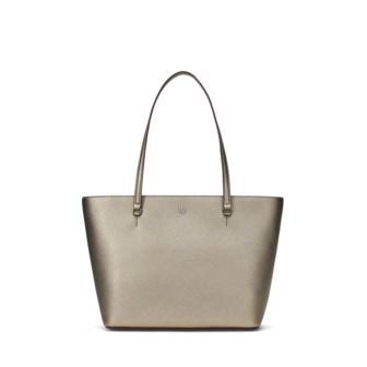 A versatile and enduring must-have accessory, the medium Karly tote is crafted with crosshatch leather for subtle texture and refined style. Detailed with a metal “LRL" logo at the front for a signature touch. Designed with a spacious silhouette and a myriad of pockets for storing your essentials. Bag features two top handles, each with an 8.75" drop length and a polished "LRL" metal logo at the front. There is a foil-printed "Lauren Ralph Lauren" logo at the exterior slip pocket. "Lauren Ralph Lauren"–engraved metal plaque at the interior. Pockets include an exterior slip pocket, interior slip and zipper pocket. Dimensions 9" H x 13" L x 4.25" D. Bag weighs approximately 1 lb., 4.25 oz. Lining is made with polyester and recycled polyester. Shell and trim: leather. Clean by a leather specialist. Includes a dust bag.