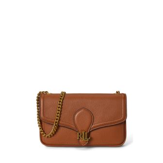 Sleek, compact, and crafted from sumptuous tumbled pebbled leather, the Bradley Crossbody Wallet offers elevated functionality for everyday wear. A luxurious addition to the Bradley collection, it features a hands-free chain strap with a 22" drop and a secure magnetic snapped closure. The front flap is embellished with a polished metal “LRL" logo, adding signature Ralph Lauren appeal. Inside, a zip pocket and three card slots provide essential organization, while the structured silhouette fits a phone and other small electronic devices with ease. Measuring 5" H x 8" L x 1.25" D and weighing approximately 0.75 lbs, it is lined with cotton and includes a dust bag for protective storage. To maintain its beauty, wipe spills immediately or seek care from a leather specialist.