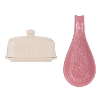 In the Meadow collection is intricately embossed with delicate florals and foliage, with a beautiful colour palette. Set includes a Spoon Rest perfect for placing on your worktop. Store, serve and keep butter fresh using the practical Butter Dish. Perfect for storing butter in the fridge or stylish enough to serve at the dining table. The durable, thick base is designed with parallel ridges ensuring the block of butter stays securely in place. The elegant, embossed lid will keep the contents fresher for longer. Made from stoneware. Both dishwasher safe.