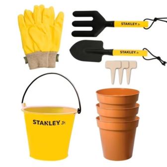 Develop Garden Skills: Encourage young ones to explore gardening with this 10Train Fine Motor Skills: Designed with kidDesigned with Safety in Mind: Crafted with safety as a priority, each tool is made with rounded edges and childEncourage Creativity: Inspire imaginative play and creativity as children engage in outdoor activities, cultivating their own mini gardens while learning about plants, seeds, and the environment. Stanley Jr. Kids 10-Piece Garden Tool Set This complete gardening set is designed for little hands and big imaginations! The kit includes a sturdy tote bag and a variety of kid-sized tools like a rake, shovel, watering can, gloves, and more everything your child needs to help in the garden or enjoy hours of outdoor pretend play. Made from durable, child-safe materials and ideal for ages 3+, it encourages hands-on learning, responsibility, and love for nature.