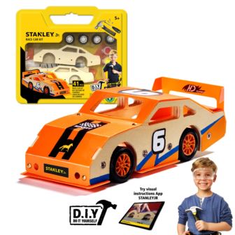 The Stanley Jr. Custom Racer Kit is for the race car drivers at heart. Little crafters will fall in love with their finished project and enjoy a sense of accomplishment when they play with a wooden toy race car that they have created using their own imagination and skill!