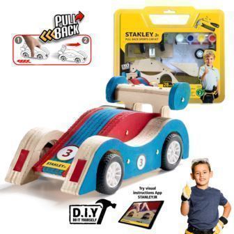 The Stanley Jr DIY Pull Back Race Car is perfect for racing with your friends and family. Simply build the kit, paint it, pull back and race!