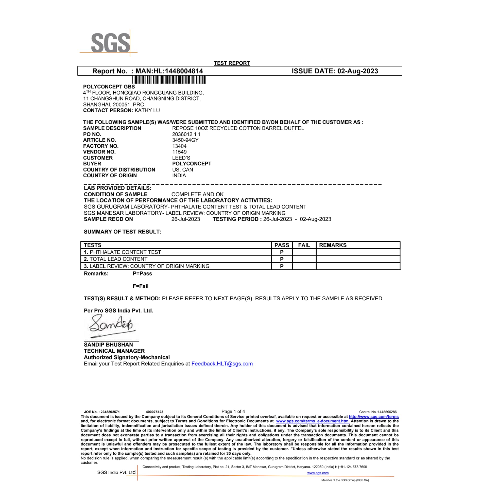 Repose 10oz Recycled Cotton Barrel Duffel 3450-94