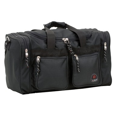 19" multi-pocket duffle is made of 600 denier polyester. It features U-top zippered opening provides easy access to main compartment, 2 large front pockets, 2 side pockets, large opening, detachable shoulder strap, large zipper pull and a 3 year limited warranty.