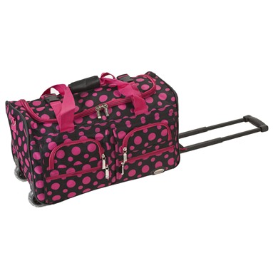 Rockland Luggage - 22" Rolling Multi-Pocket Duffle - Black/Pink Dot