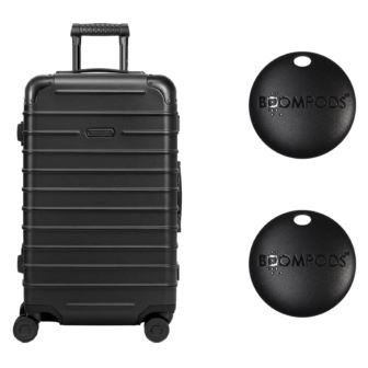 Trips are always more enjoyable when you can bring as much as you want. Our trunk is a large check-in suitcase with a built-in shelving system and unbreakable polycarbonate shell ready for whatever adventure awaits. Kit contains 2 Boomtags - Black.