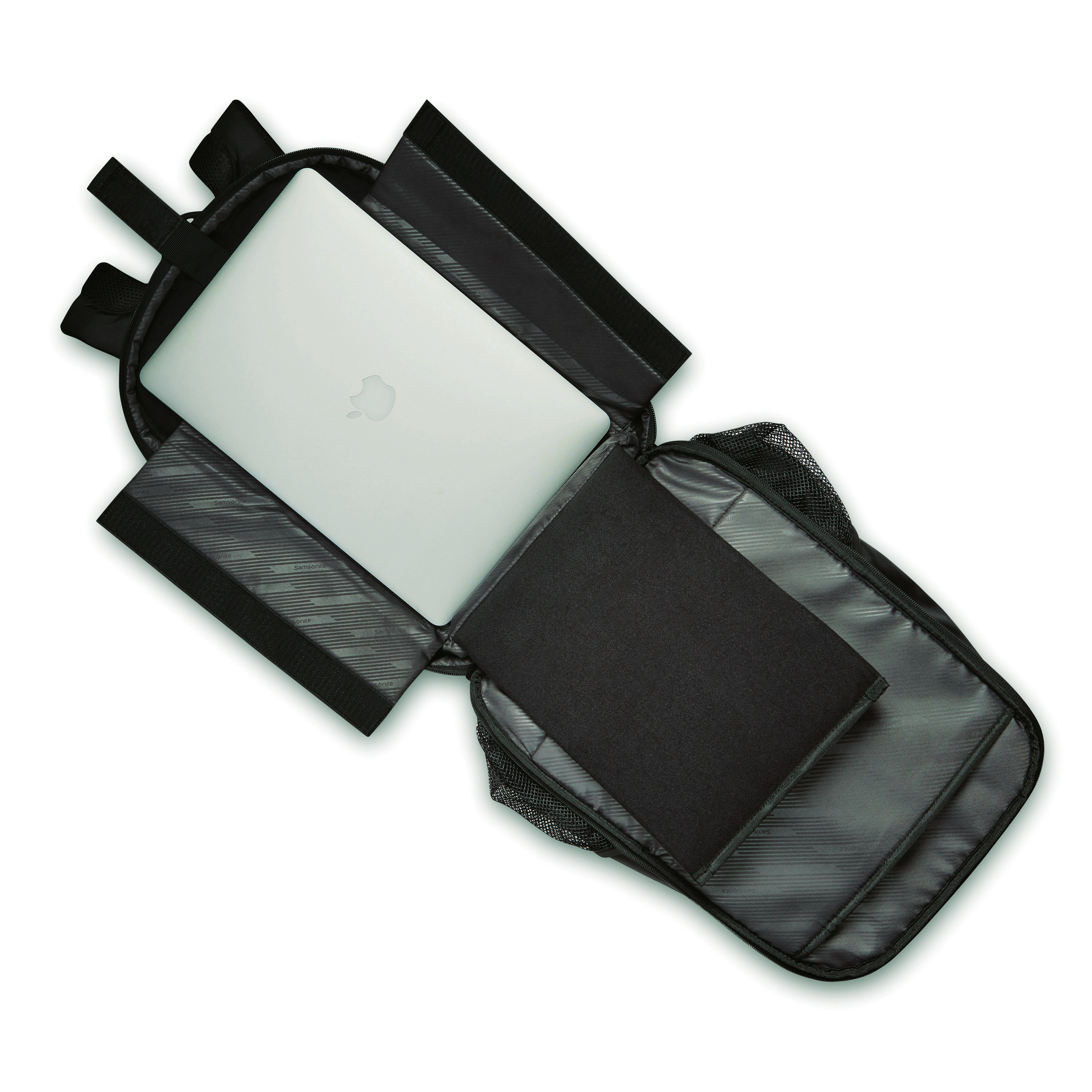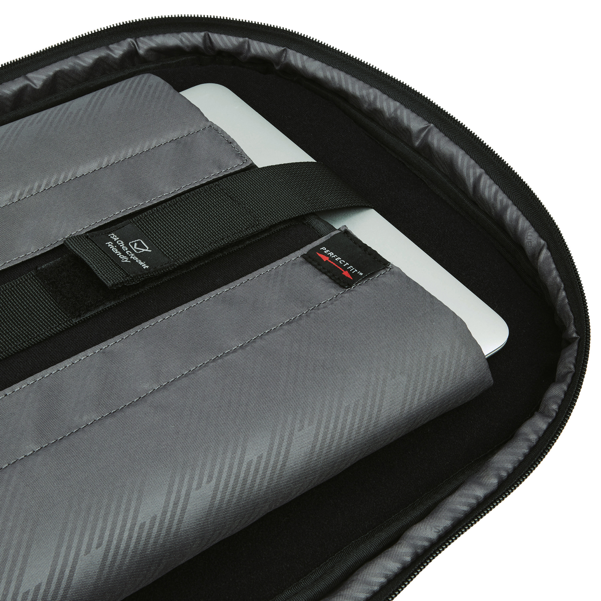 Large main compartment for storage of cords, files, books, and clothes. Exterior organization includes 1 quick access pocket for smaller items, 1 larger pocket with organization to store essentials, lined phone pocket, 2 pen sleeves, and business card sleeves. Dedicated, padded compartment, sized to fit most laptops up to 15.6". Unzips to lay flat for fast and easy screening at the airport without removing the laptop. Stackit™ Strap fits over most upright handles for easy mobility.