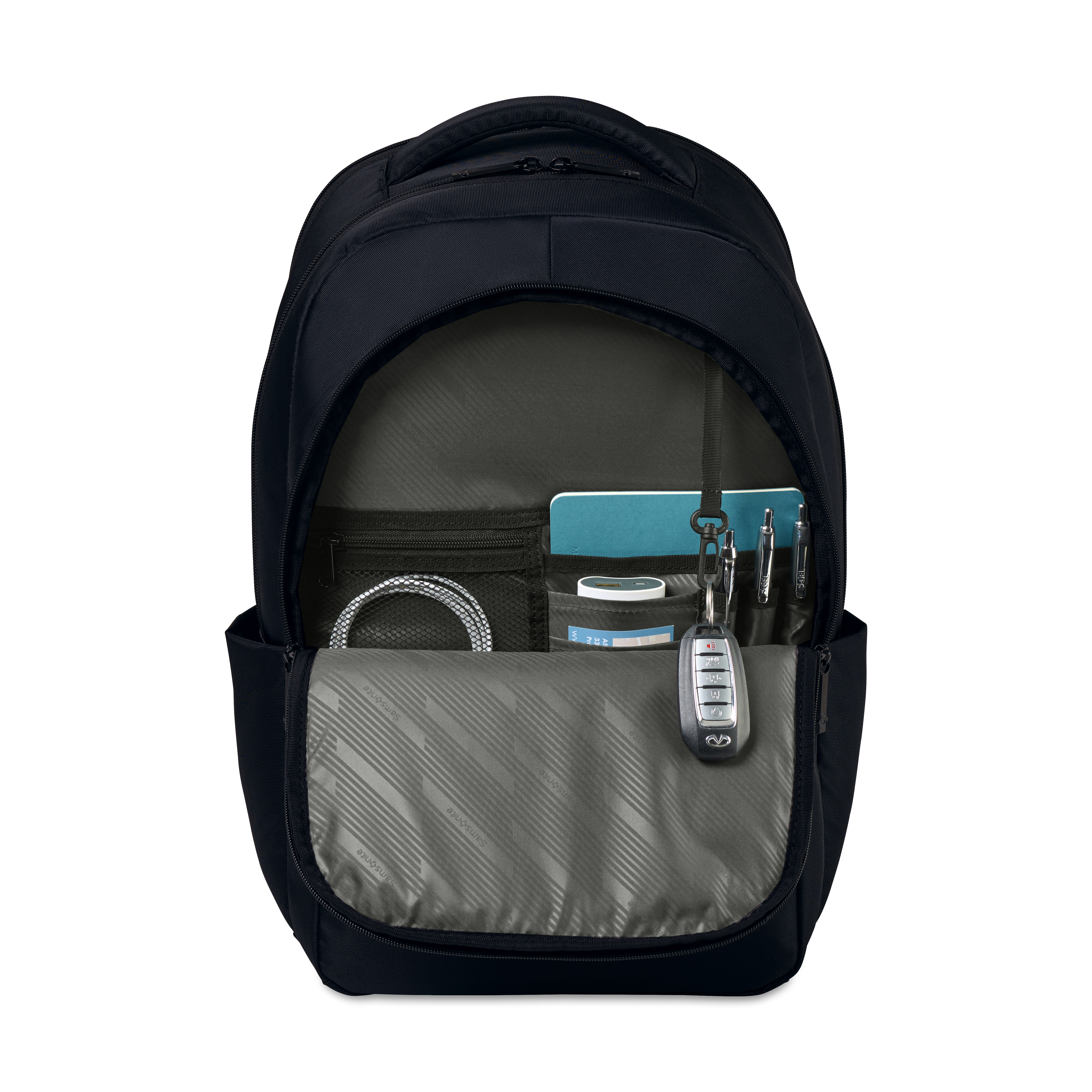 Smart design for business on the move. The Samsonite Fox Chapel Laptop Backpack combines modern style with professional function, featuring a padded 15.6" laptop compartment, 10" tablet pocket, and multiple organizers. With breathable padding, water bottle pockets, and a StackIt™ strap for luggage, it’s built for daily commutes and travel.