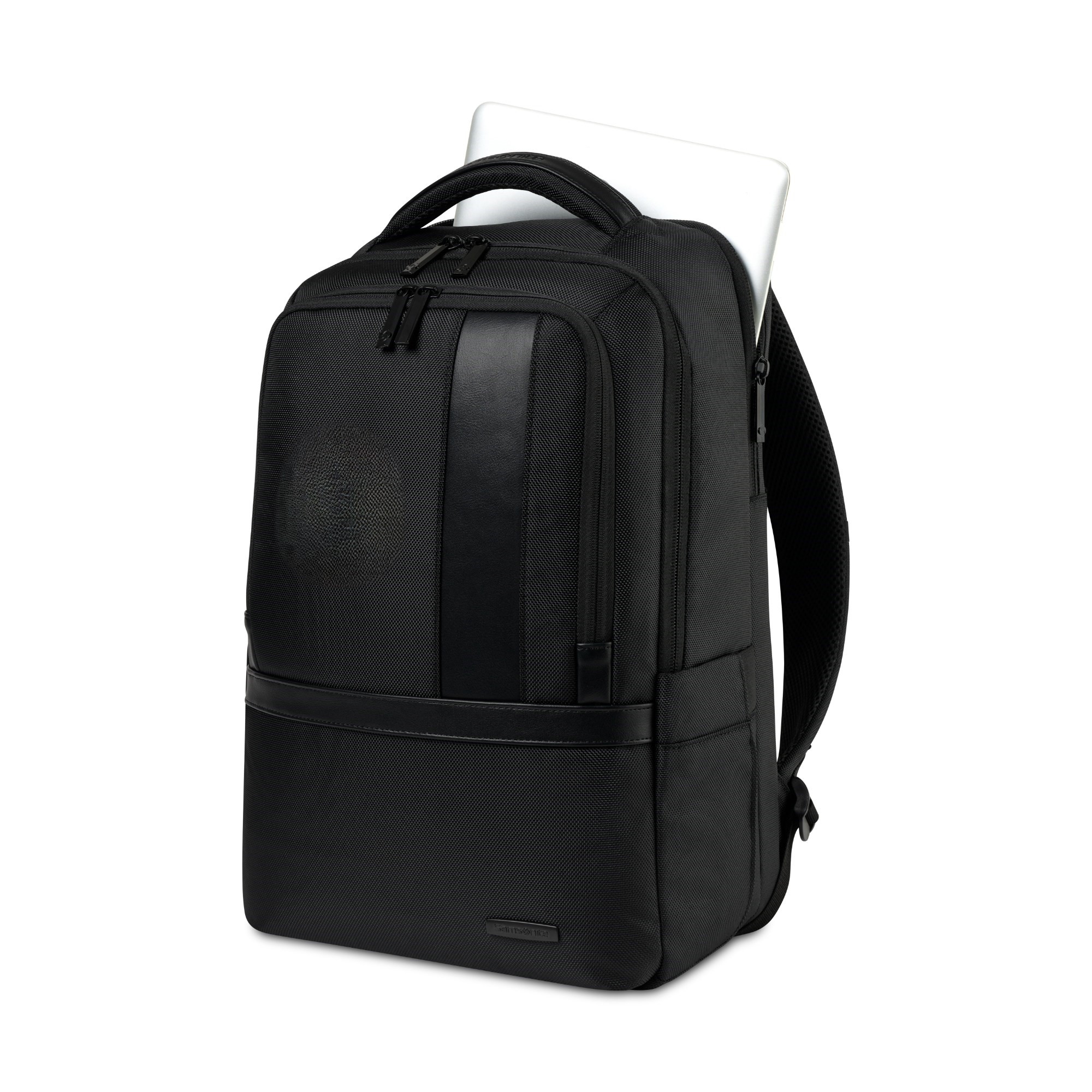 Professional style, everyday function. The Samsonite Triville Laptop Backpack fits up to a 15.6" laptop and 10" tablet, with multiple organizers to keep work essentials in place. Featuring dual water bottle pockets, padded breathable straps, and a StackIt™ trolley strap, it’s perfect for business travel. Finished with vegan leather accents for a modern touch.
