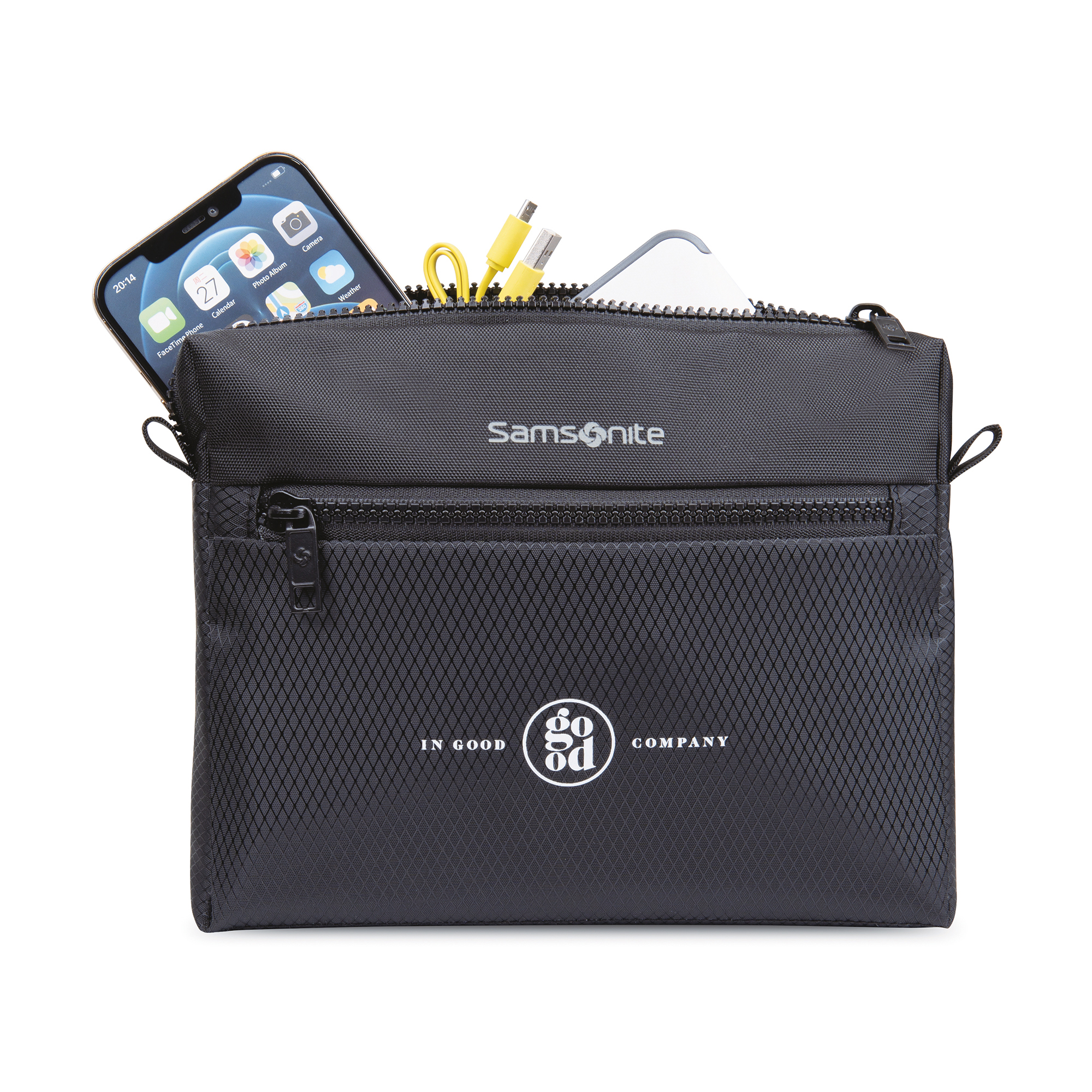 Stay organized wherever you go with the Samsonite Zippered Pouch. Designed for versatility, it stores everything from travel essentials to tech accessories. A front zip pocket keeps small items accessible, while webbing loops function as grab tabs or attachment points to another bag—making this pouch a reliable companion for any journey.
