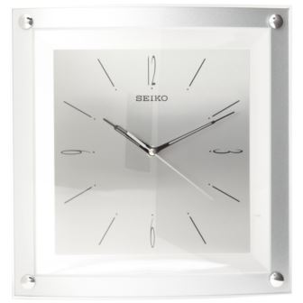 Silver-tone metallic case with a darker square silver dial. Curved, clear Lucite dial cover. Clear outer dial allows your wall color to be exposed through part of the dial. Quiet-Sweep second hand will not tick as the second hand will move in a continuous fashion. One ''AA'' battery included.
