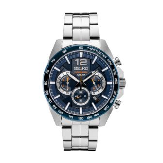 Seiko Watch - Mens Chronograph Silver Case with Blue Dial with Orange Accents