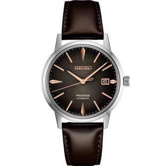 Tokyo, a city that mixes nostalgic old and exciting new culture has inspired a new theme in the Presage Cocktailtime collection. These new models express Tokyo's modern cocktail time, which has shifted from the classic bar to a modernlounge in an elegant hotel or skyscraper. While keeping the beautiful textured dial, the characteristic index, and the iconic seconds hand which is inherentin the Cocktail Time models, the new introductions have a updated design that gives a slimmer lighter feeling.