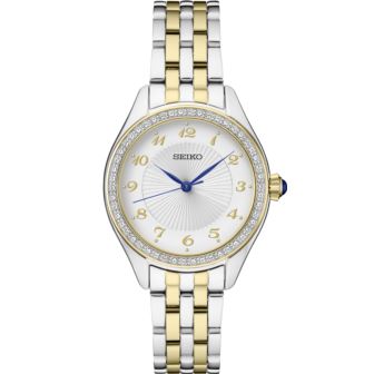 Seiko Watch - Seiko Ladies Crystal TT Silver Patterned, 2 tone SS/Gold Bracelet, Swarovski Crystals bezel