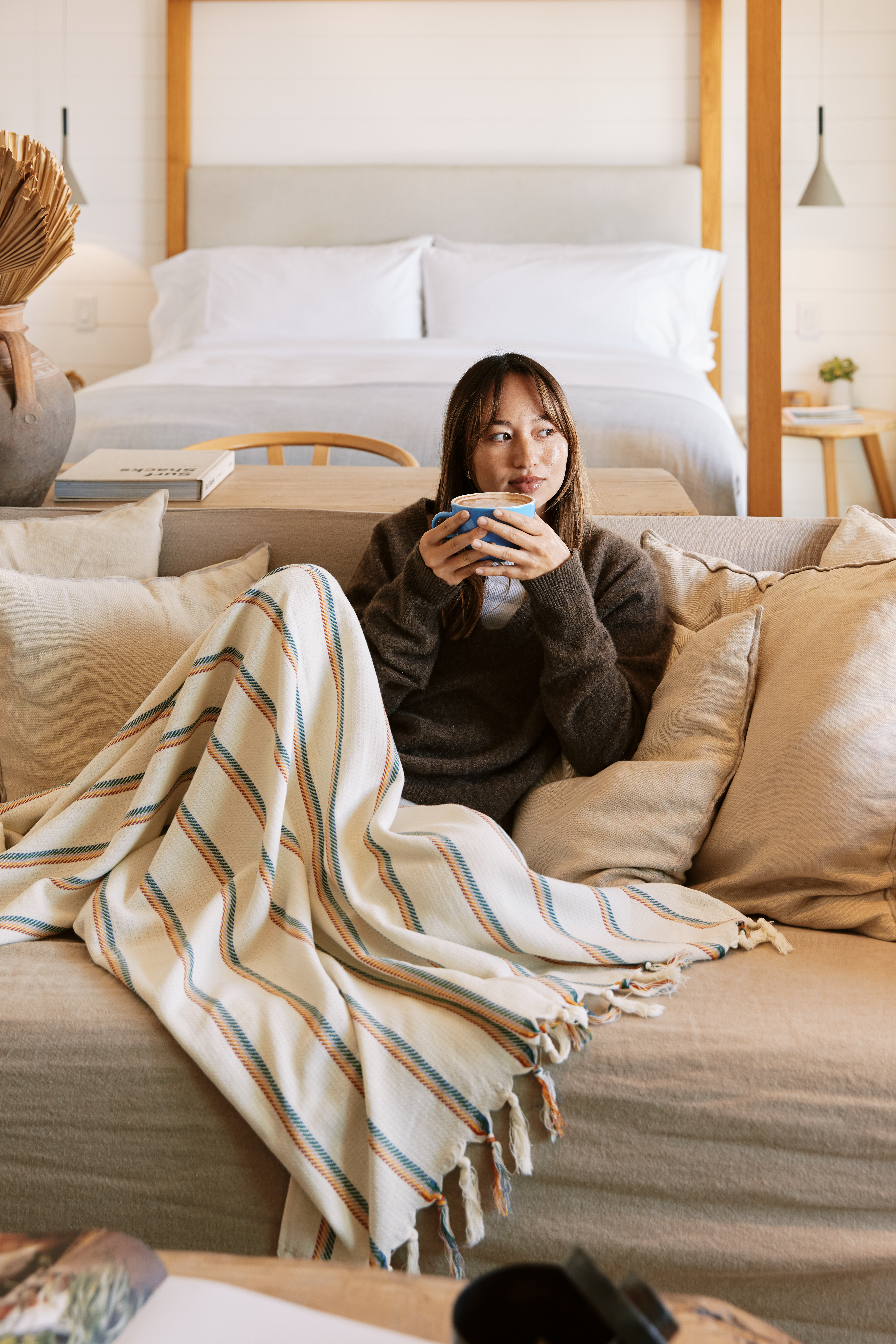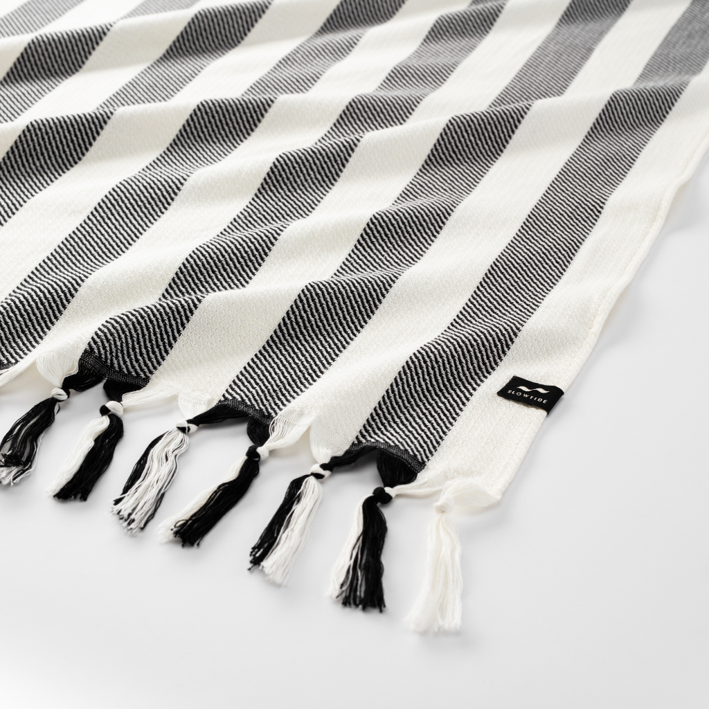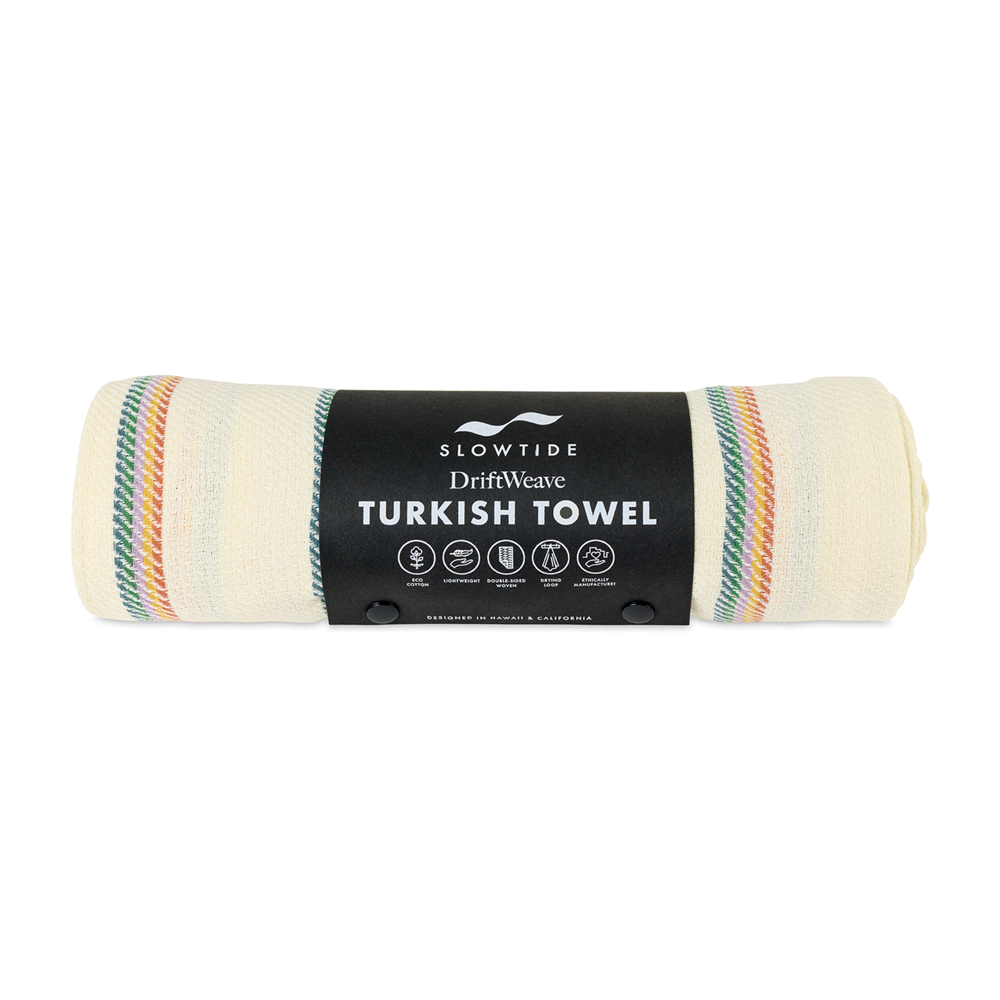 Lightweight, oversized, and sand-resistant, the Slowtide® Turkish Cotton Towel is made for beach days, yoga, or everyday use. Quick-drying and softer with each wash, it doubles as a throw or blanket on the go. Finished with a vegan leather label and drawcord loop, it’s as practical as it is beautiful.