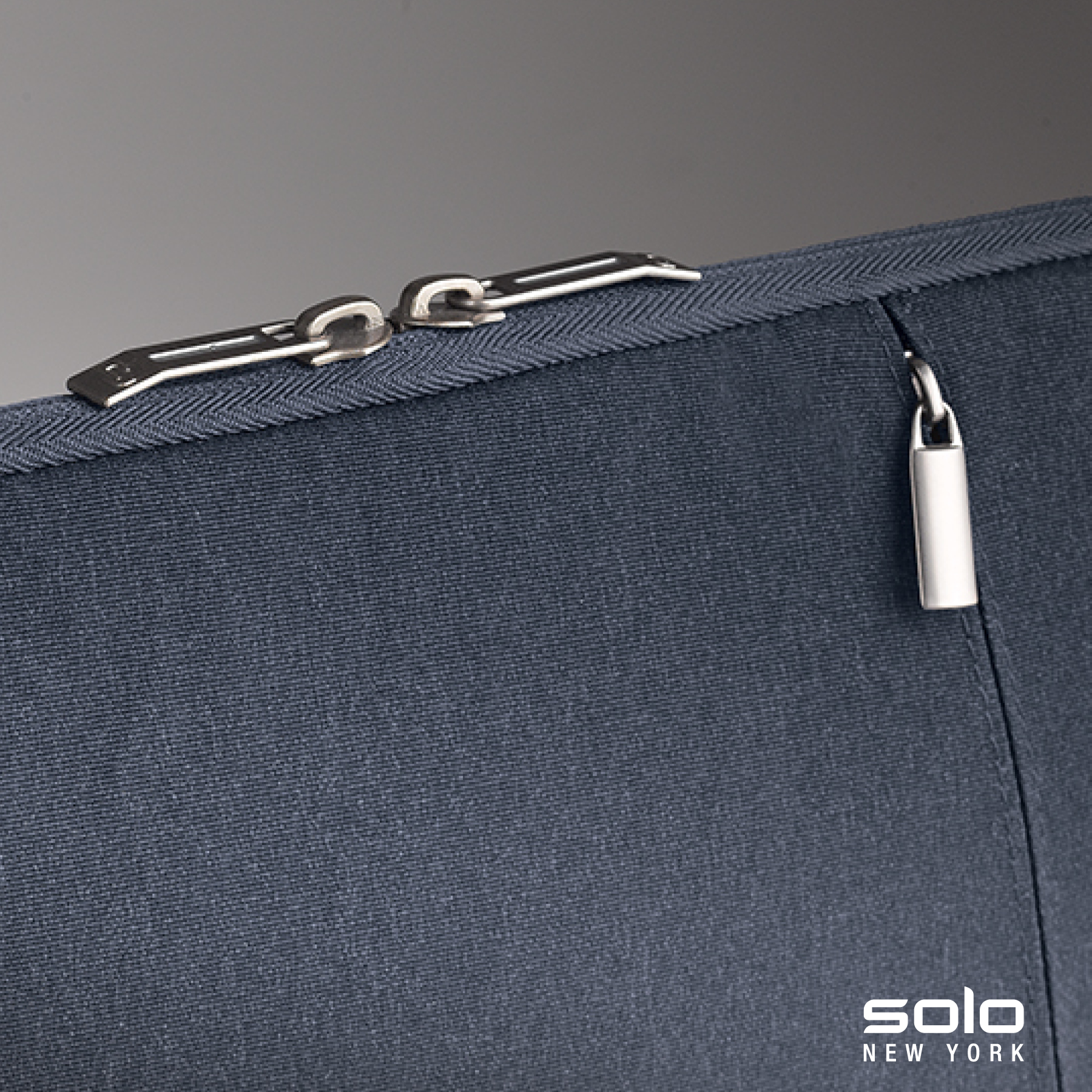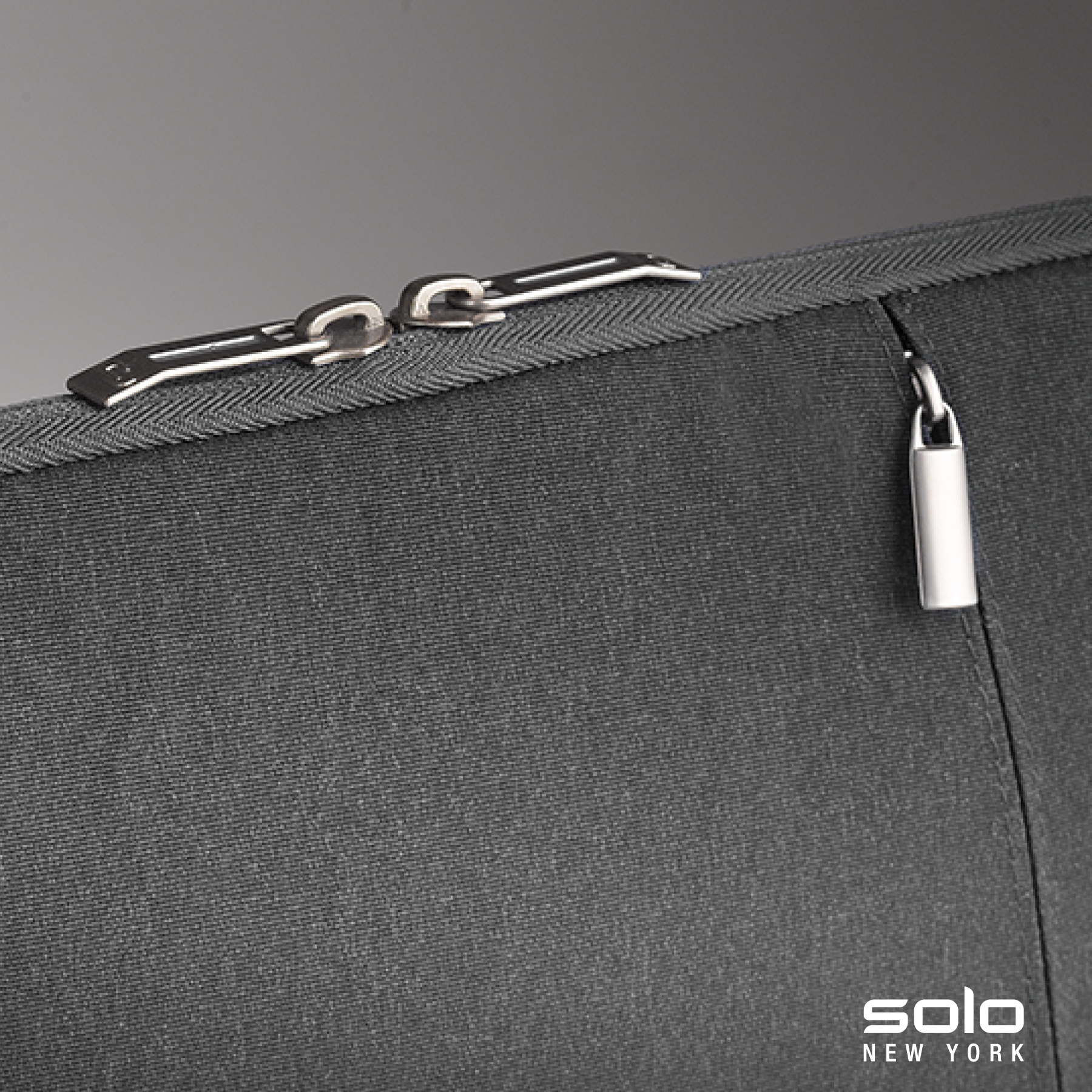 Solo New York's 15.6" Oswald Laptop Sleeve from the Sleeve Collection exudes fashion and style while remaining fully functional. It fits most laptops up to 15.6" and will protect your electronics as it is fully padded and has scratch resistant lining. This laptop sleeve has an angled front zippered pocket, sleek profile, is made from ultra lightweight materials and has a 5-year limited warranty.