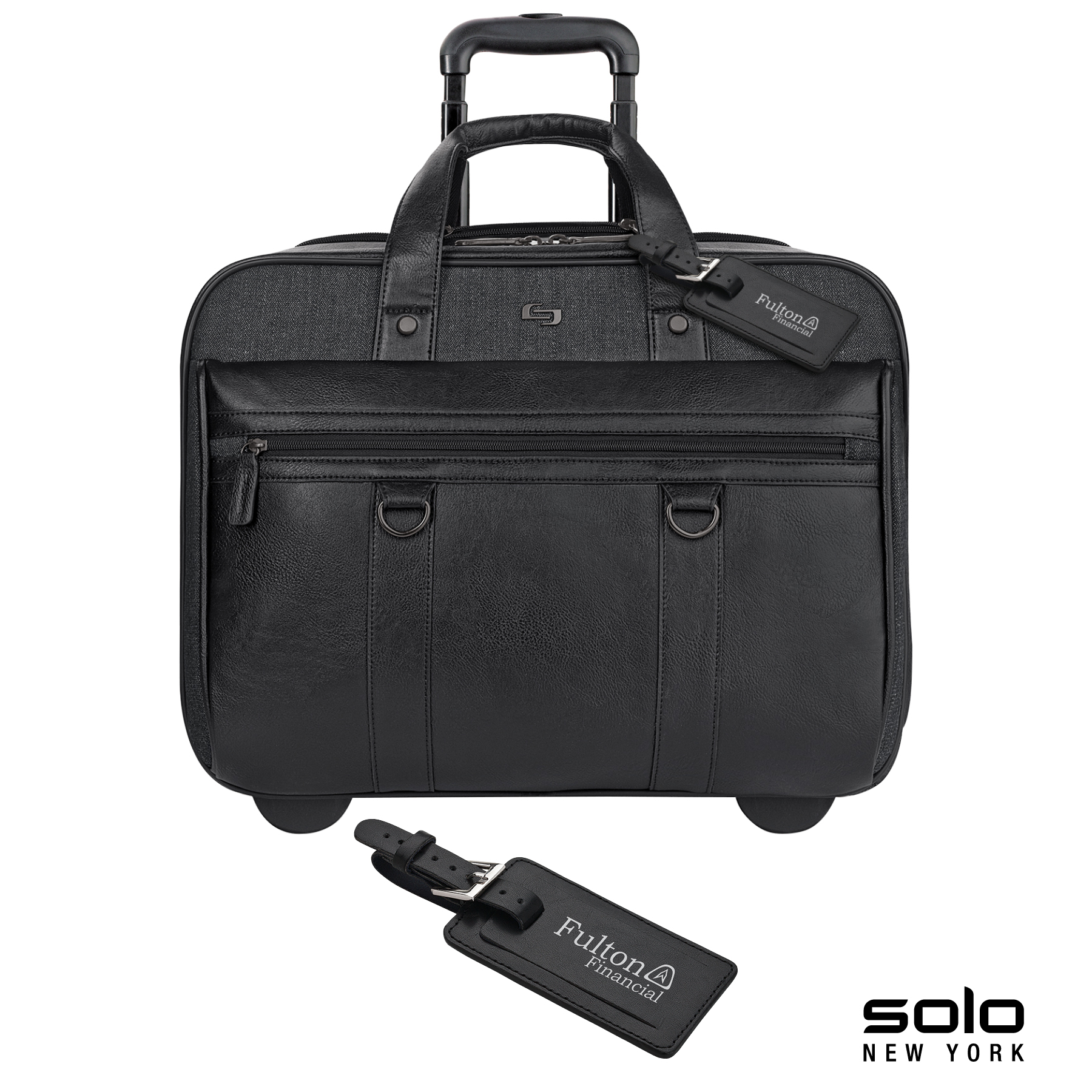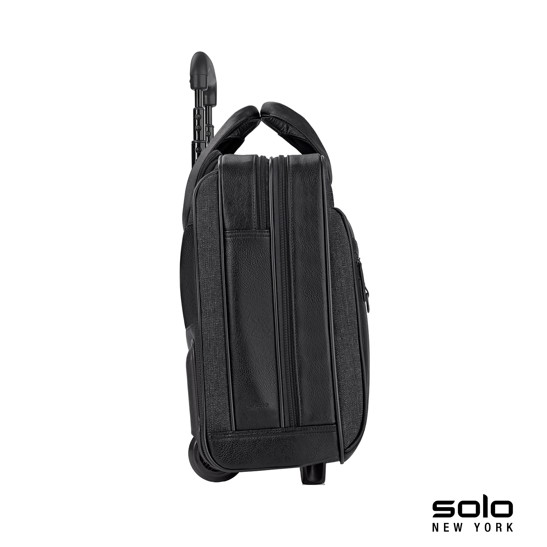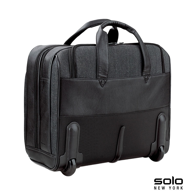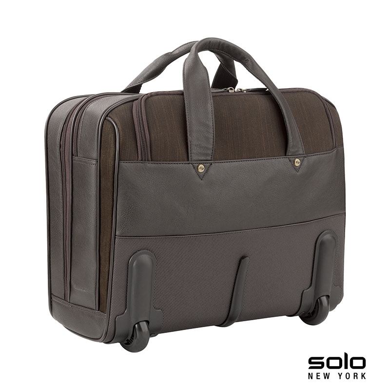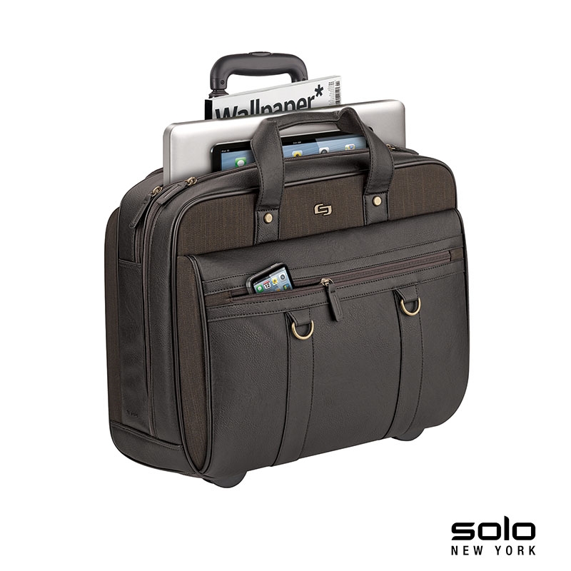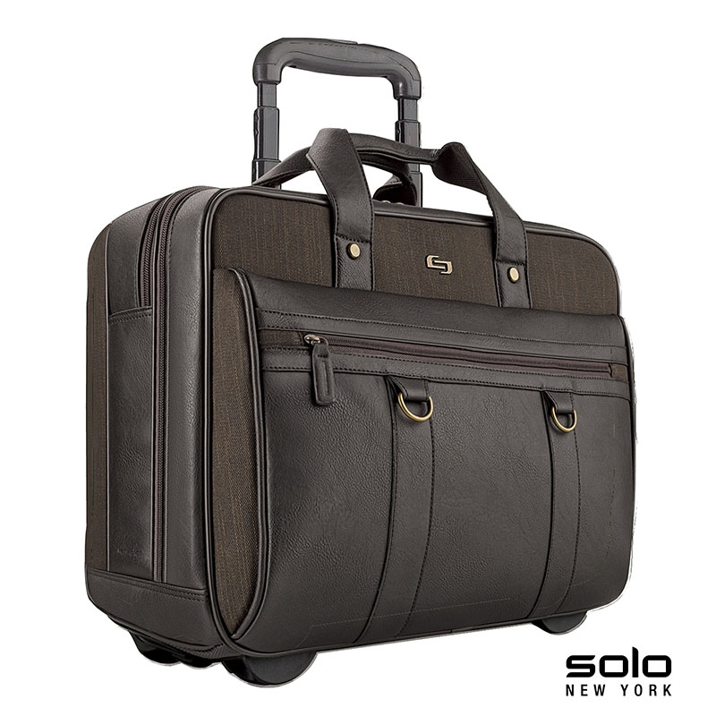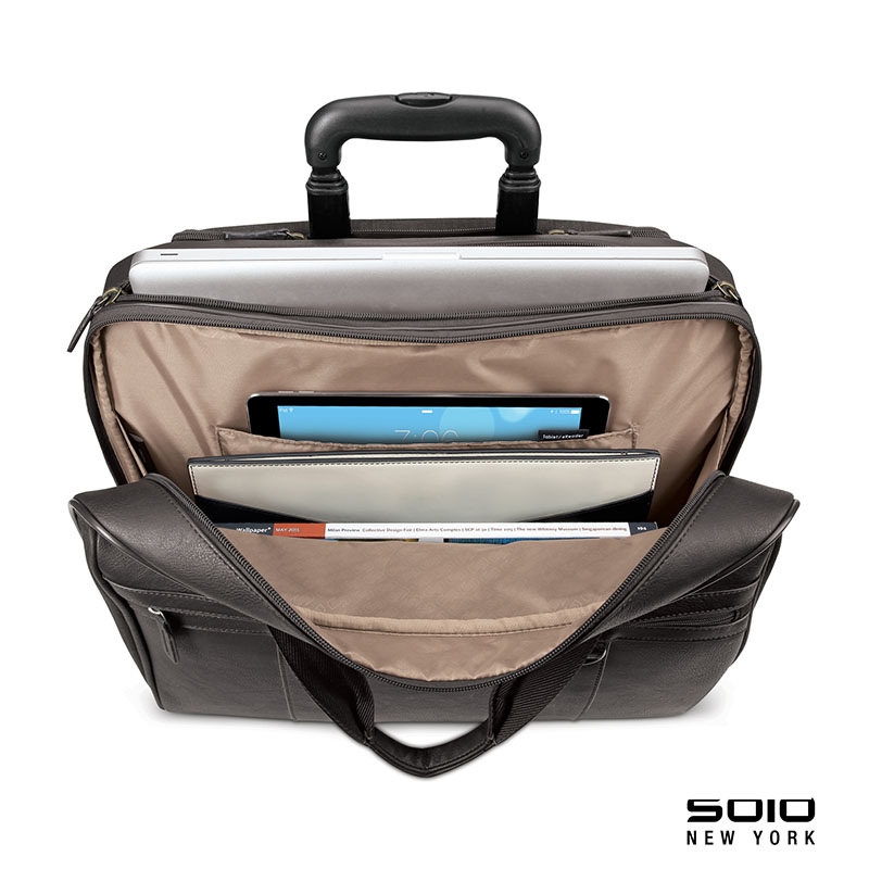 The fully-lined Solo New York Macdougal rolling case is constructed from top-shelf materials. It features a padded compartment that protects laptops up to 17.3" and a compartment with a dedicated tablet / eReader pocket and two extra-large file pockets. The front zippered pocket has organizers and lots of room for your accessories. It also features padded carry handles, leather luggage tag, metal D-rings and a telescoping trolley handle hidden in the rear compartment that extends to 38 1/2”. Manufacturer provides 5 year limited warranty.