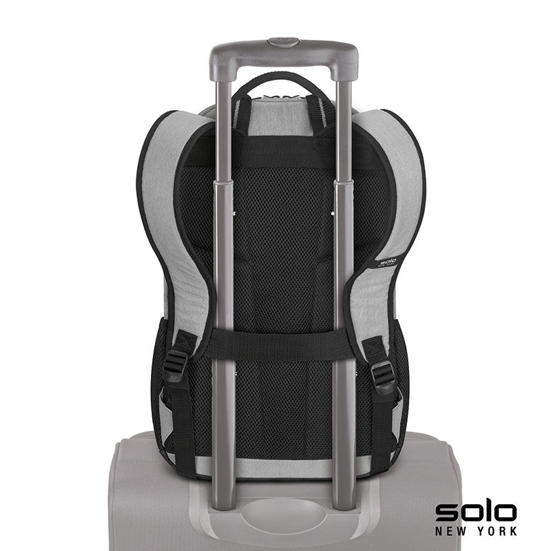 The Region Backpack is from the Solo New York Varsity Collection and has a fully padded laptop compartment that fits 15.6” laptops and ultrabooks or 15” macbooks. It has an interior organizer for your small items, pens and notes and side mesh pockets for your water bottles. The Region backpack is comfortable to travel with as it has a padded back and shoulder straps and a back strap that can slide over your luggage handle. It is lightweight, has a carry handle, a quick access front pocket and a beautiful red interior lining. With a 5-year limited warranty, the Region Backpack is a great gift for your executives and top sales associates.